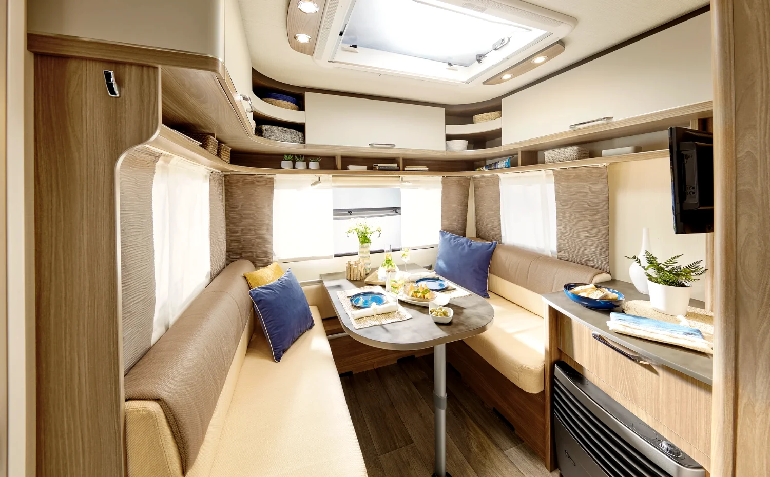 Entuzjaści caravaningu i relaksu w bezpośrednim otoczeniu przyrody mają do dyspozycji mnóstwo miejsca do przechowywania, co od razu pozwala poczuć się jak w domu. Producent zadbał też o komfortową sypialnię, część jadalnianą i kuchenną oraz praktyczną łazienkę. Nowe przyczepy kempingowe z serii Premio zróżnicowane są pod względem układów wnętrz, co umożliwia wybór najtrafniejszego wariantu aranżacyjnego – zarówno dla 2 osób, jak też dla rodzin podróżujących z dziećmi.