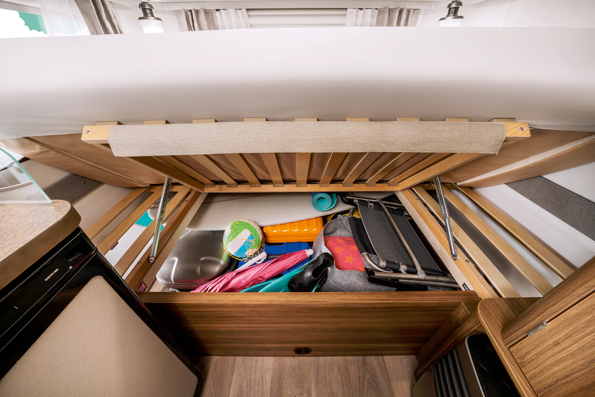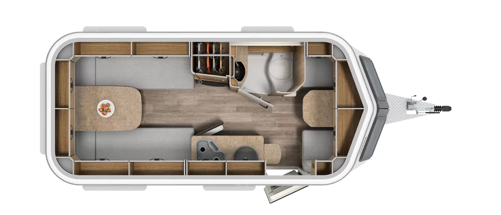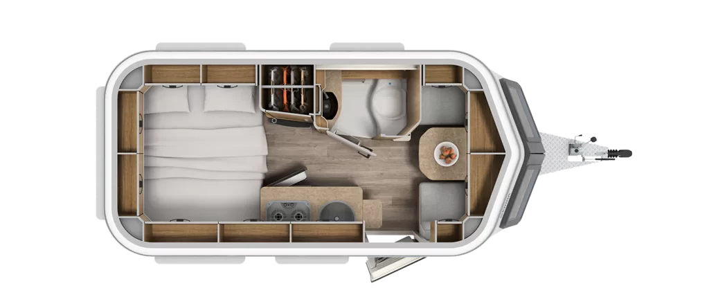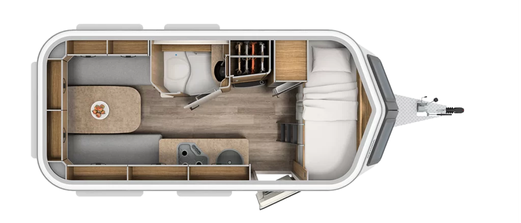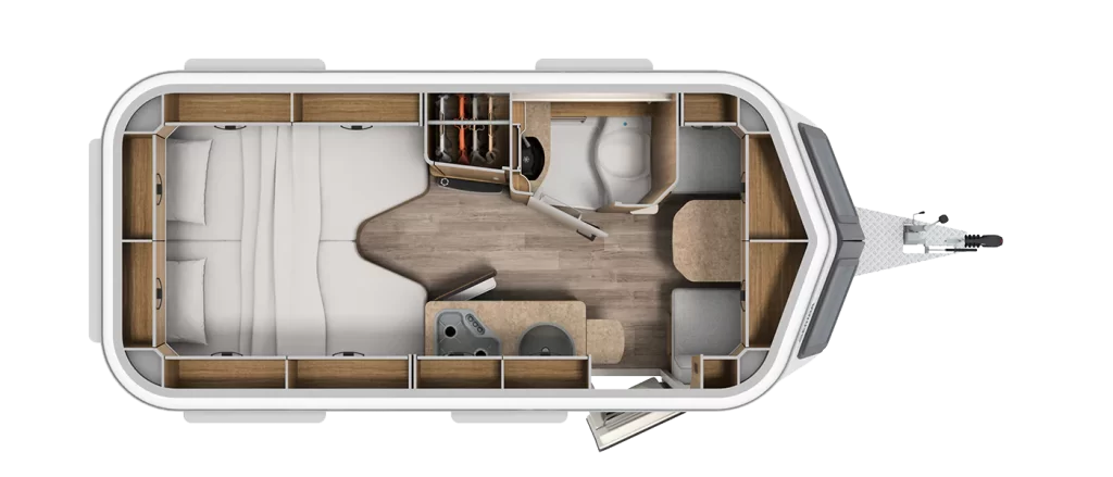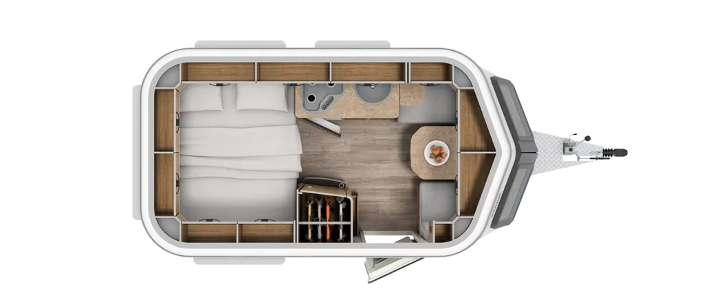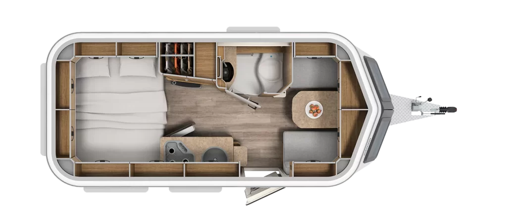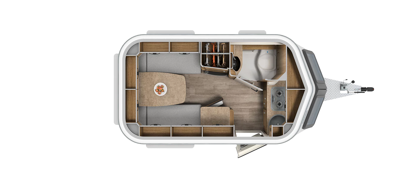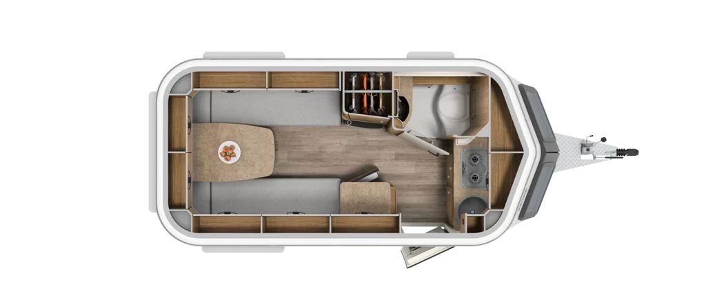Eriba Touring to przyczepa z podnoszonym dachem, co dodaje całej konstrukcji atrakcyjności także pod kątem typowo użytkowym, z uwagi na znacznie lepszą cyrkulację powietrza. Jedną z charakterystycznych cech tego modelu jest aerodynamiczny kształt, który doskonale pasuje do pojazdu w stylu retro, a przy tym wiąże się z mniejszym zużyciem paliwa. Kompaktowa Eriba nie tylko zachwyca, ale też zapewnia komfortową przestrzeń do podróżowania dla 3 lub 4 osób!