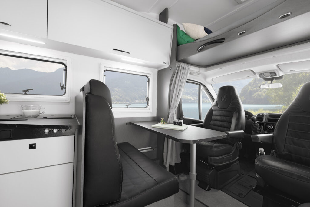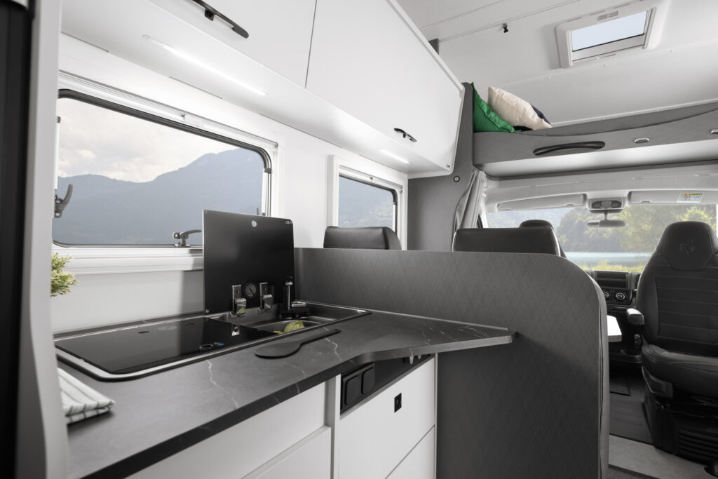 Charakterystyczna bryła typu Alkowa oferuje stałe, przestronne łóżko nad kabiną kierowcy, co pozwala uniknąć codziennego ścielenia salonu i oszczędza cenny czas podczas postoju.