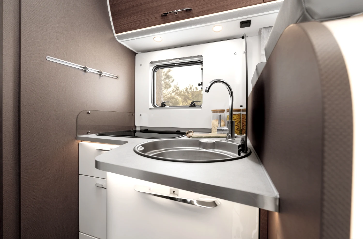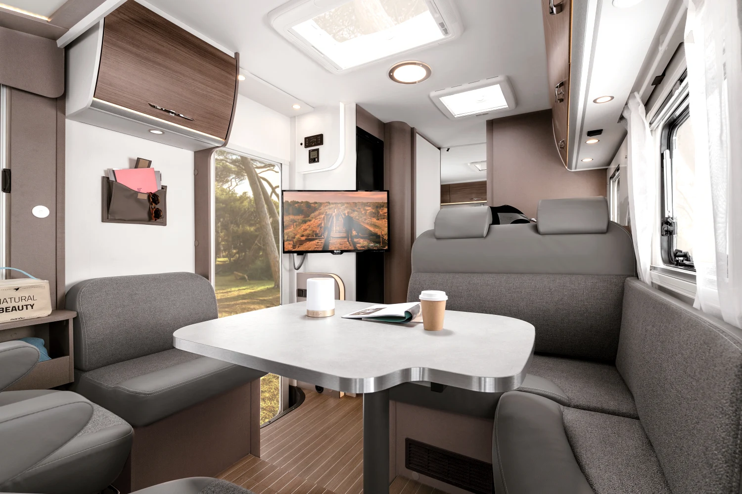 Zintegrowane kampery o długości ok. 7 metrów to bez wątpienia oferta dla osób nie uznających kompromisów. W strefie mieszkalnej można poczuć się jak w domu, jednak z pewnym wyjątkiem – panoramiczne okna umożliwiają podziwianie zmieniających się co chwilę widoków. Szybko można się przekonać, że taki relaks wpływa regenerująco zarówno na umysł, jak i na ciało.