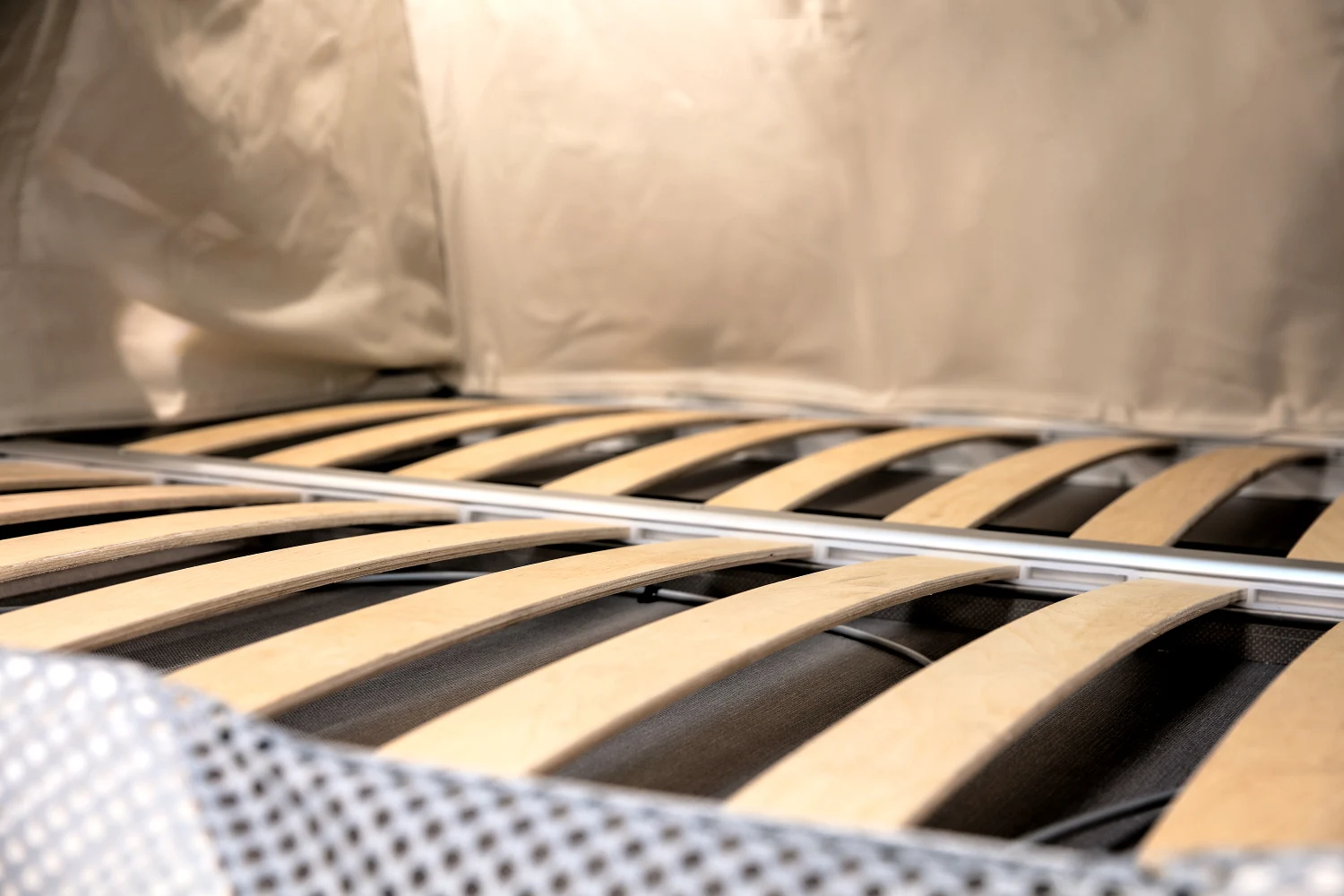 - łóżko składane ze stabilnym stelażem z listewek, z wysokojakościowymi materacami posiadającymi zdejmowane pokrowce