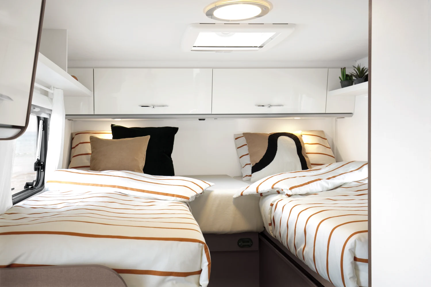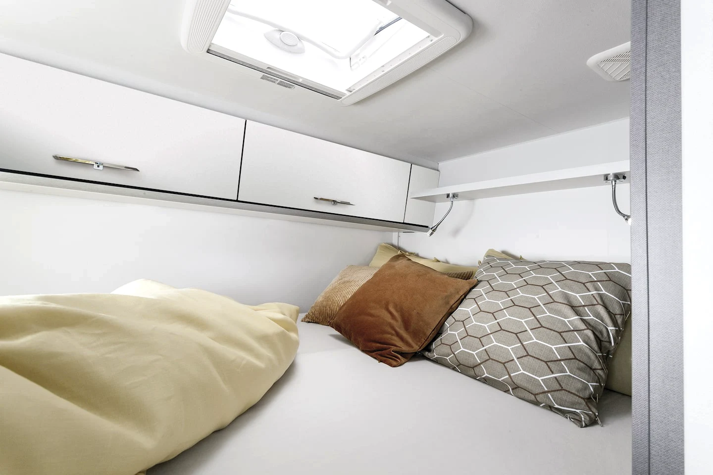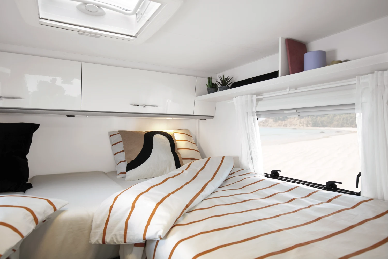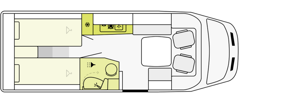 - podwójne lub pojedyncze łóżka w części sypialnej (w zależności od wybranego modelu) z wysokiej jakości materacami wyposażonymi w zdejmowane pokrowce
