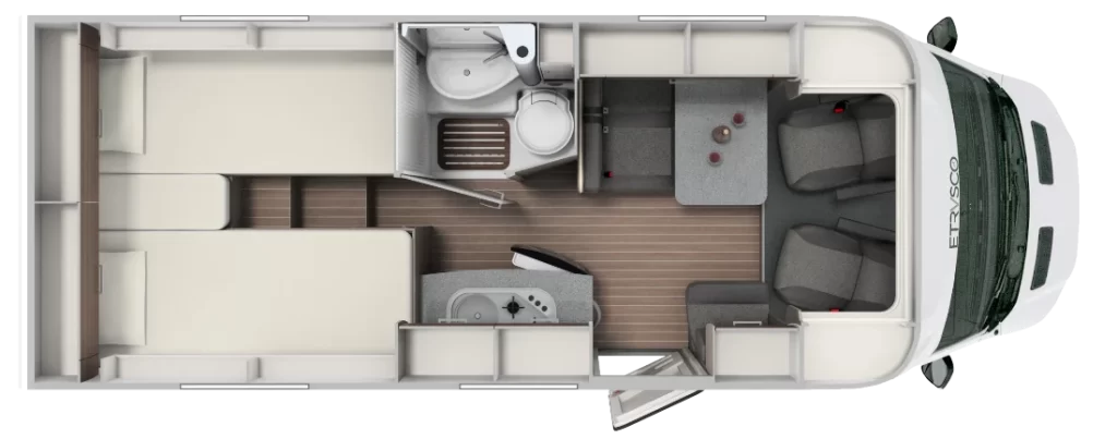 Modele marki Etrusco bardzo dobrze sprawdzają się jako samochody kempingowe dla 4 osób. Nowatorskie rozwiązania stwarzają wymarzone warunki do podróżowania w Polsce i za granicą. Entuzjaści małych i dużych wycieczek mogą korzystać z prawdziwie domowych udogodnień. Komfortowa sypialnia, praktyczny salon ze strefą kuchenną oraz efektowna łazienka idealnie wypełniają czas wolny i gwarantują niekwestionowany relaks, aby w dobrym nastroju rozpocząć zwiedzanie i poznawanie kolejnych miejsc.