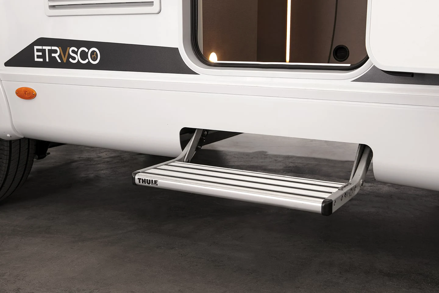 - wejście z elektrycznie wysuwanym stopniem