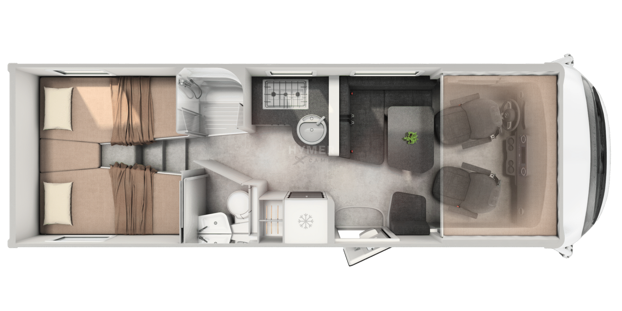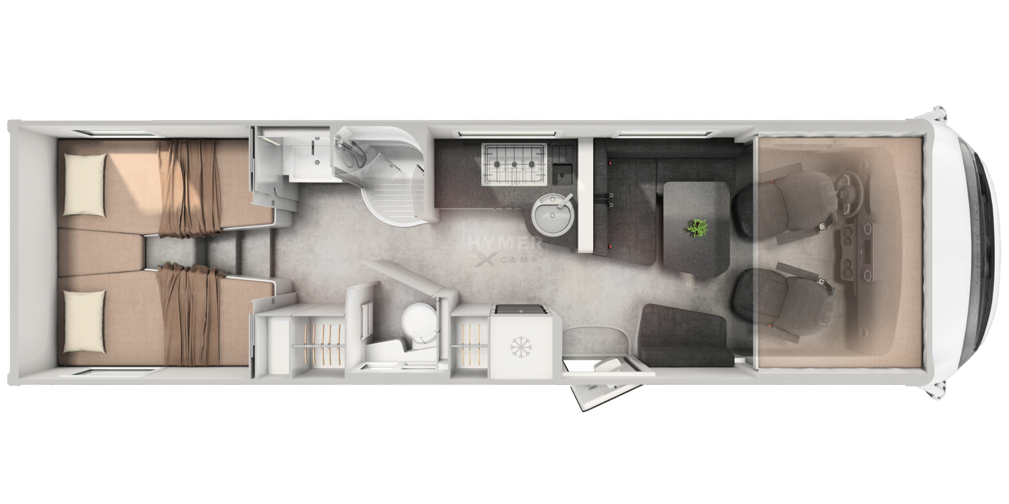 • Obrotowe fotele kabiny z regulacją wysokości i kąta nachylenia, tapicerowane tą samą tkaniną co przestrzeń dzienna
