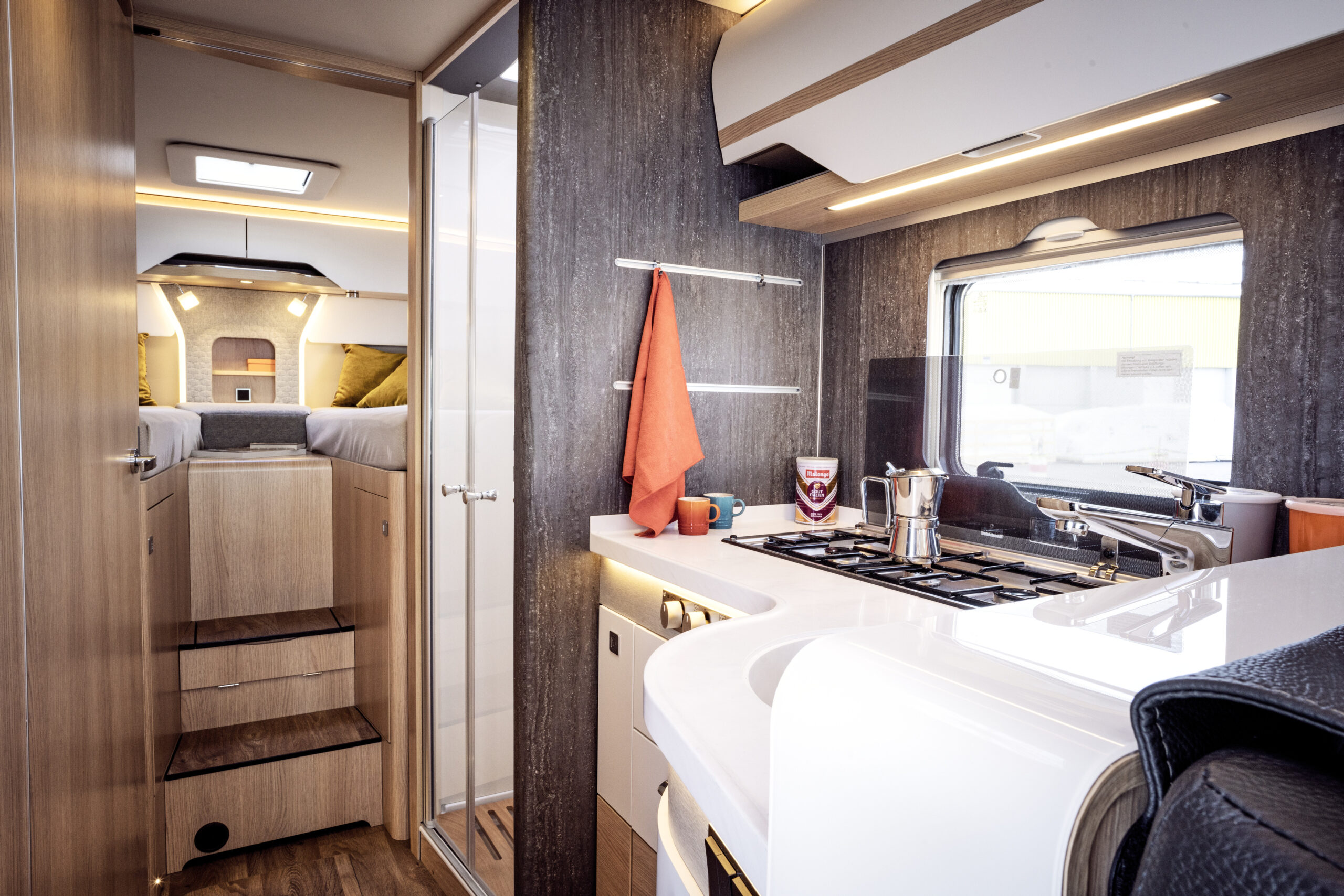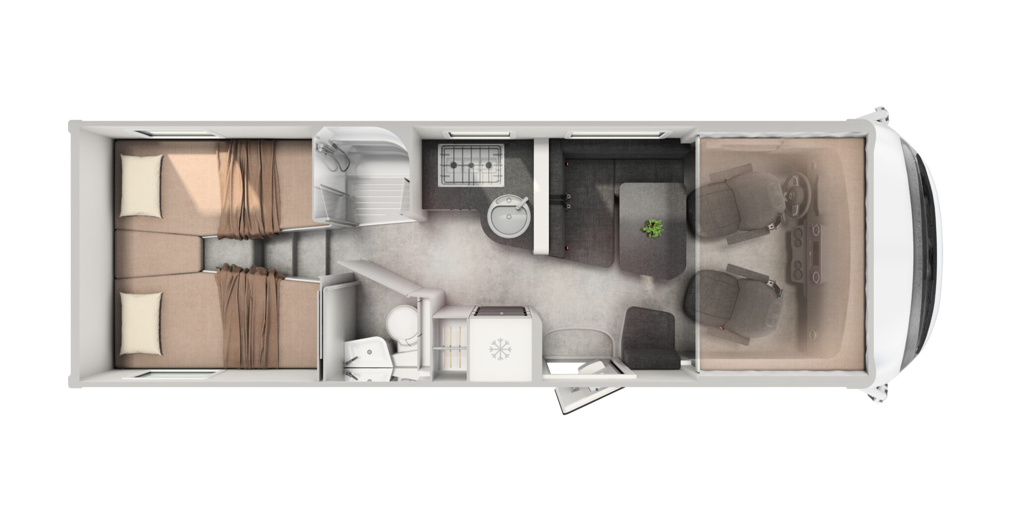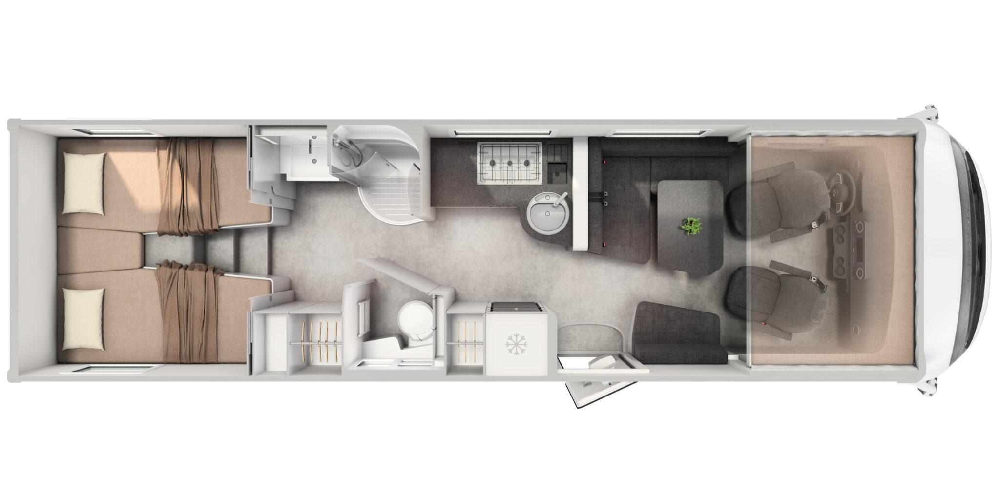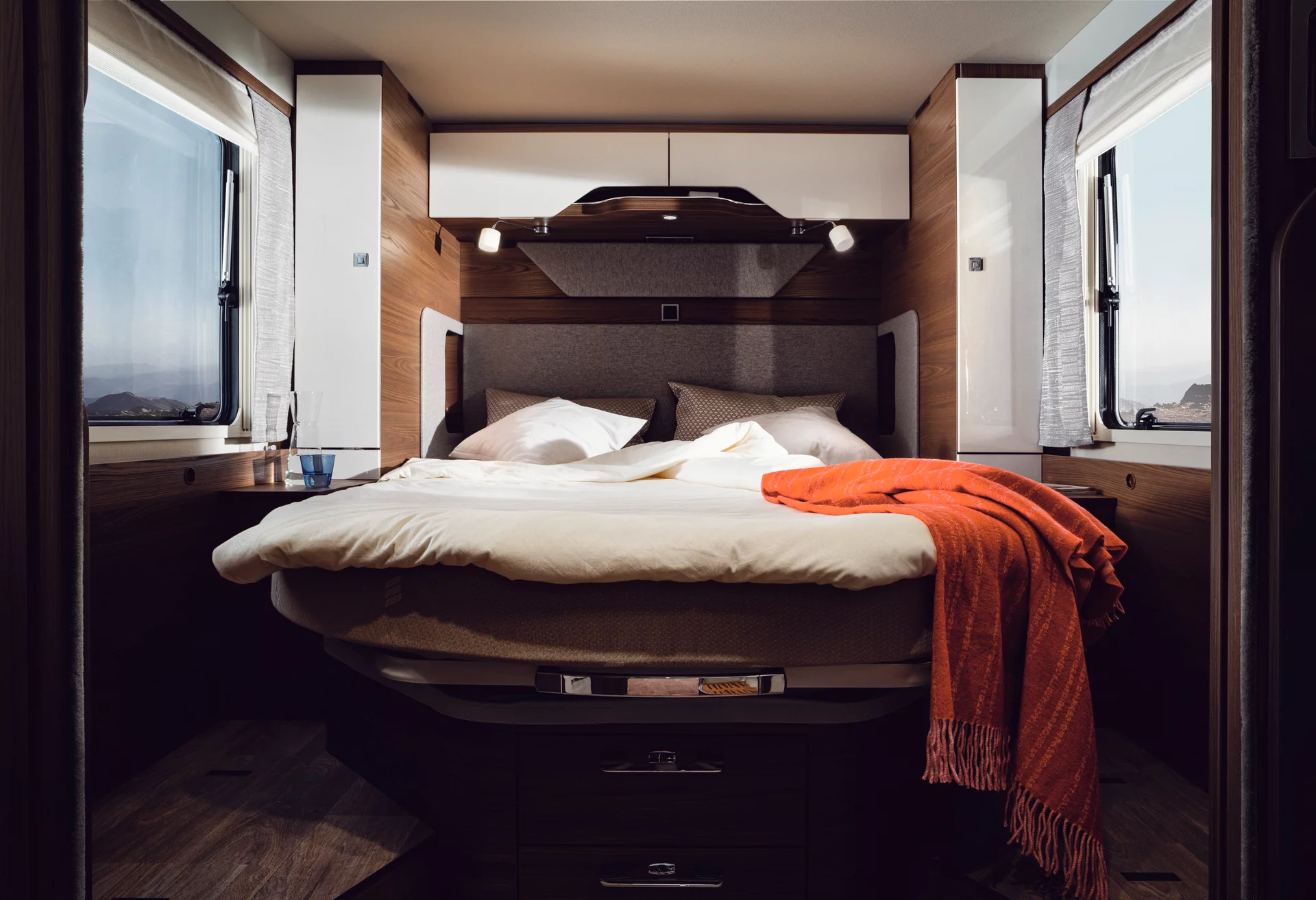 36 cm wysokości z funkcją przeładunku, zapewnia dodatkową przestrzeń, lepszą izolację i odporność na zimno. Płaska podłoga w części mieszkalnej zwiększa komfort.