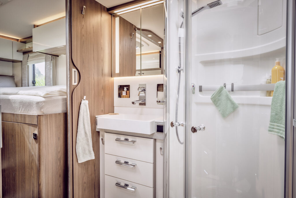 32-calowy Smart LED-TV z wbudowanymi głośnikami, napędem DVD i systemem HYMER Smart-Multimedia z Bluetooth®. Dodatkowo, możliwość instalacji drugiego 22-calowego telewizora w sypialni
