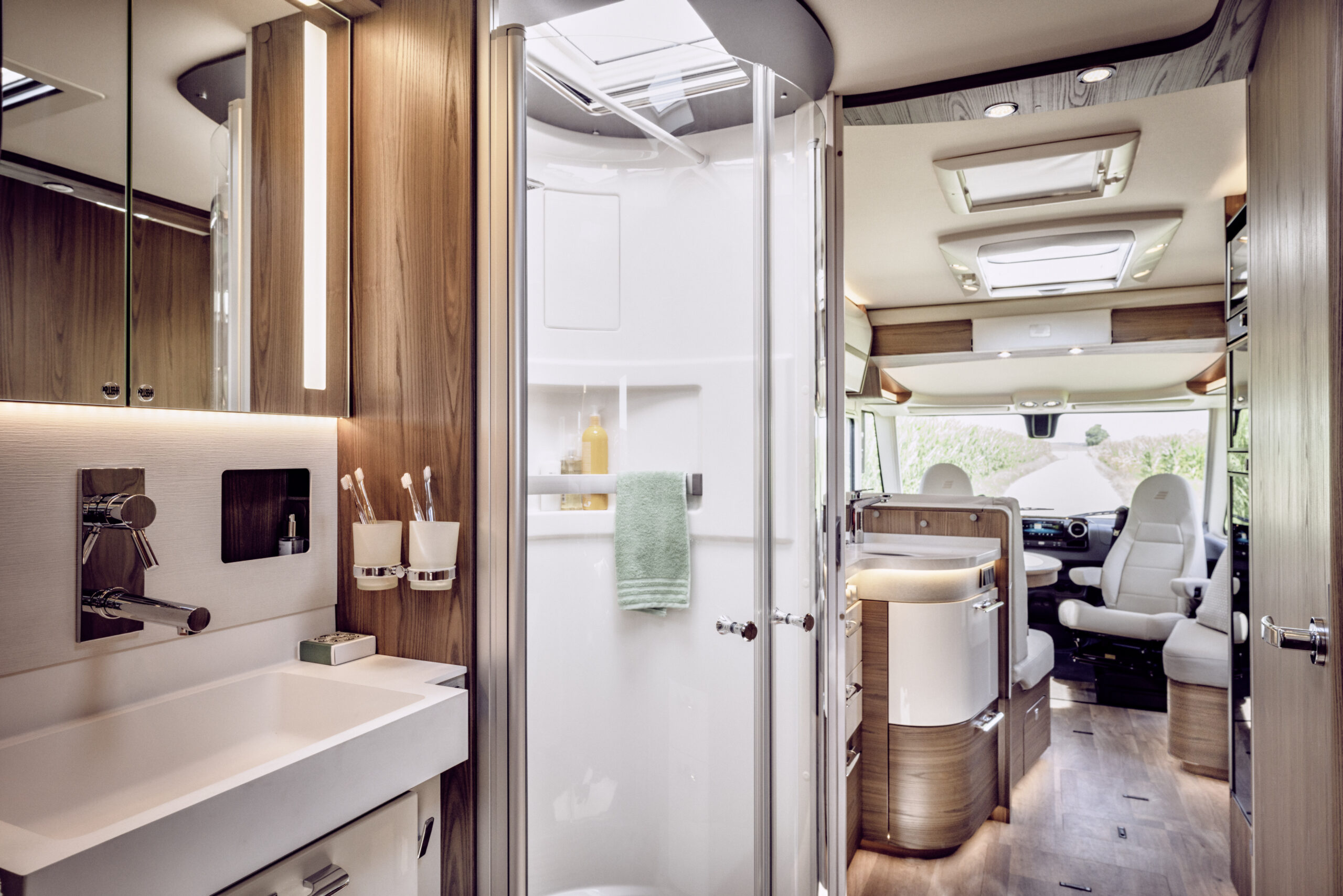- Panoramiczne okno dachowe Skyview nad kabiną kierowcy