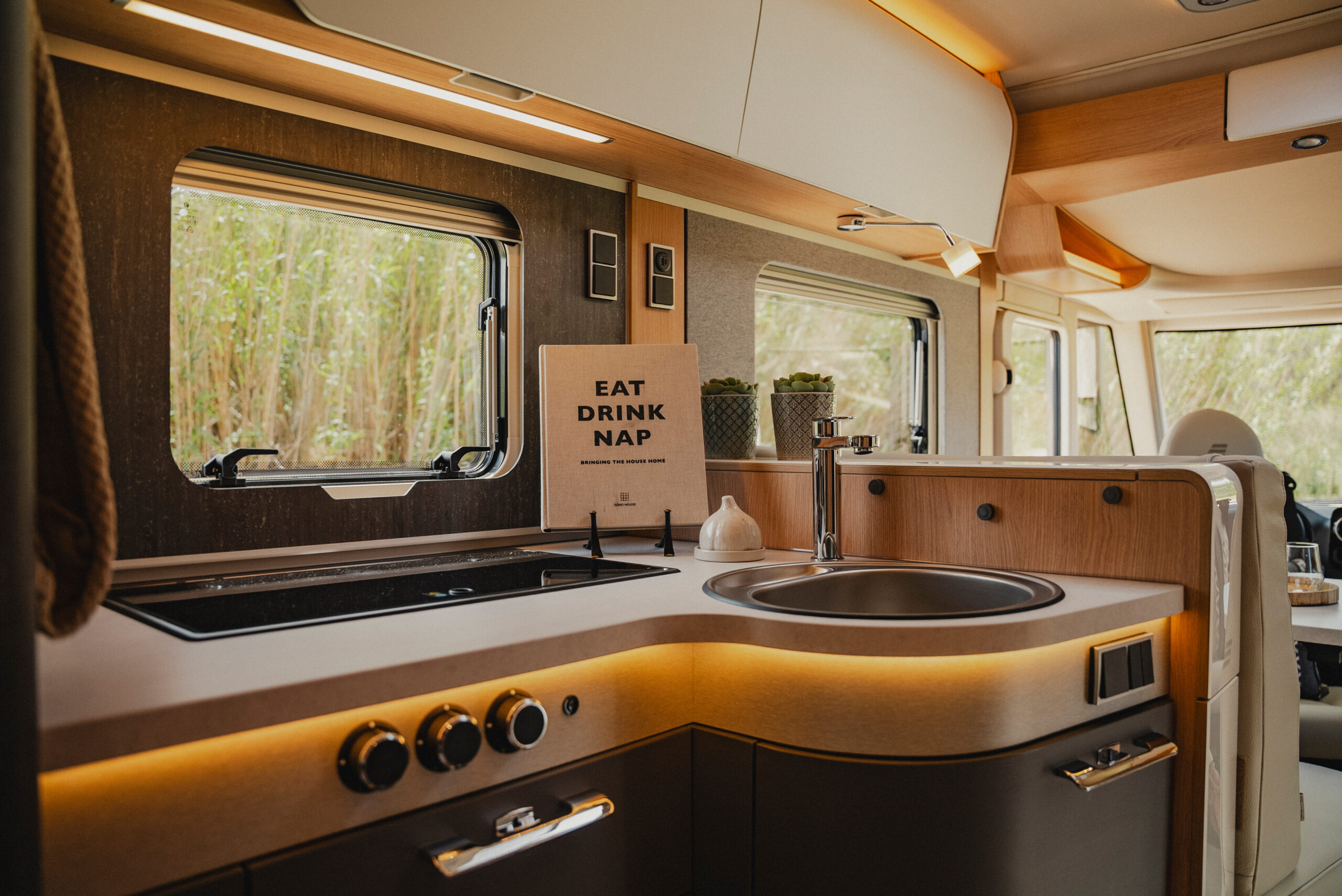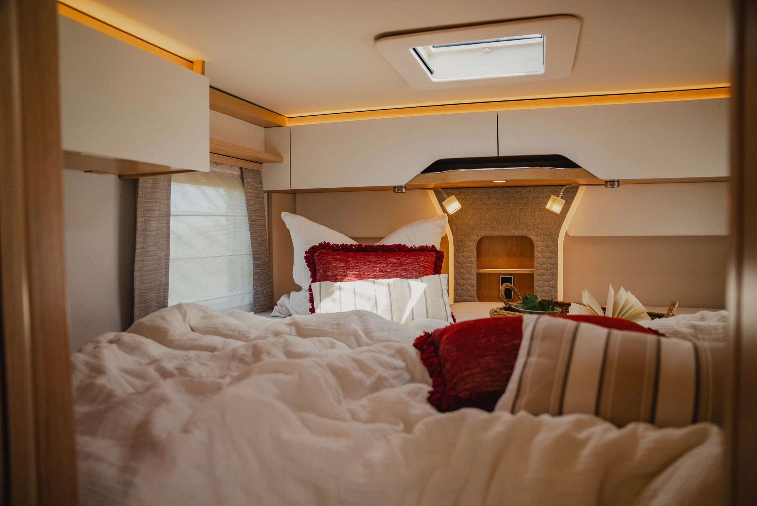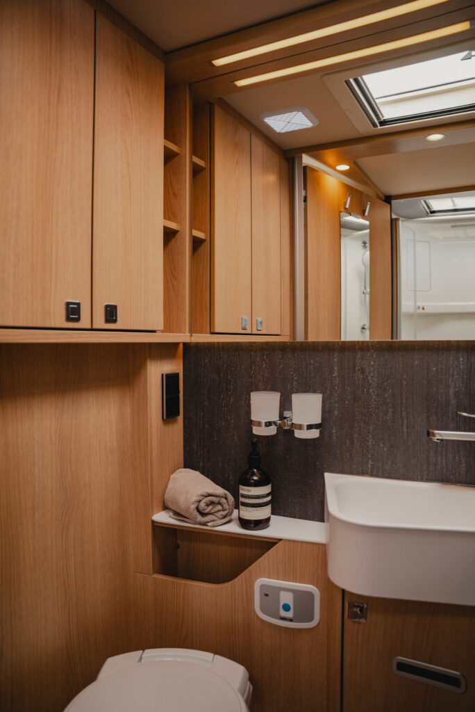Trzy moduły solarne po 95W z kontrolerem 360W zapewniają pełną niezależność od zewnętrznej infrastruktury. System HYMER Smart Battery 2.0 z technologią LiFePO4 opcjonalnie rozbudowywalny do 320 Ah – dla maksymalnej samowystarczalności.