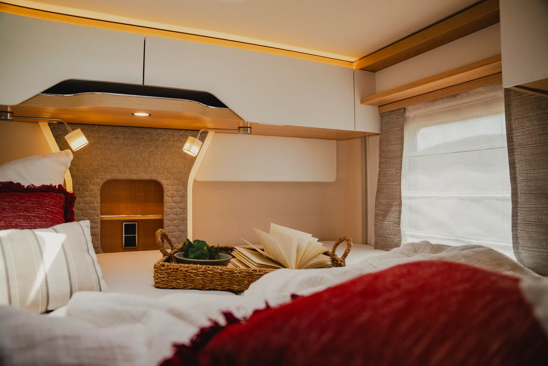 - Plisowane zasłony kabiny premium chroniące przed wścibskimi spojrzeniami i nadmiernym nasłonecznieniem
