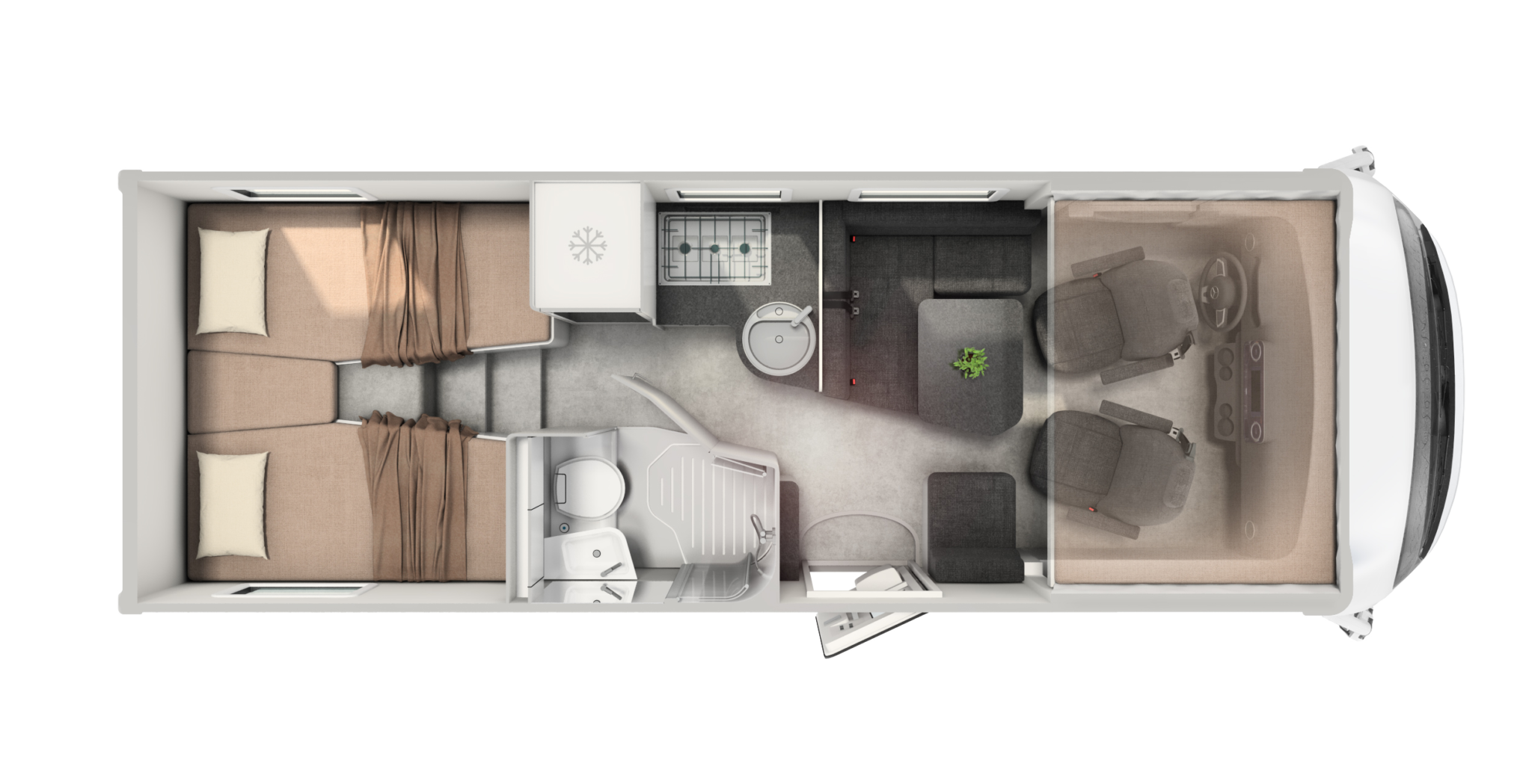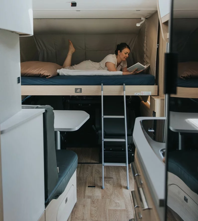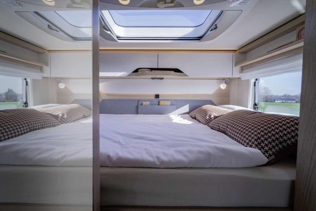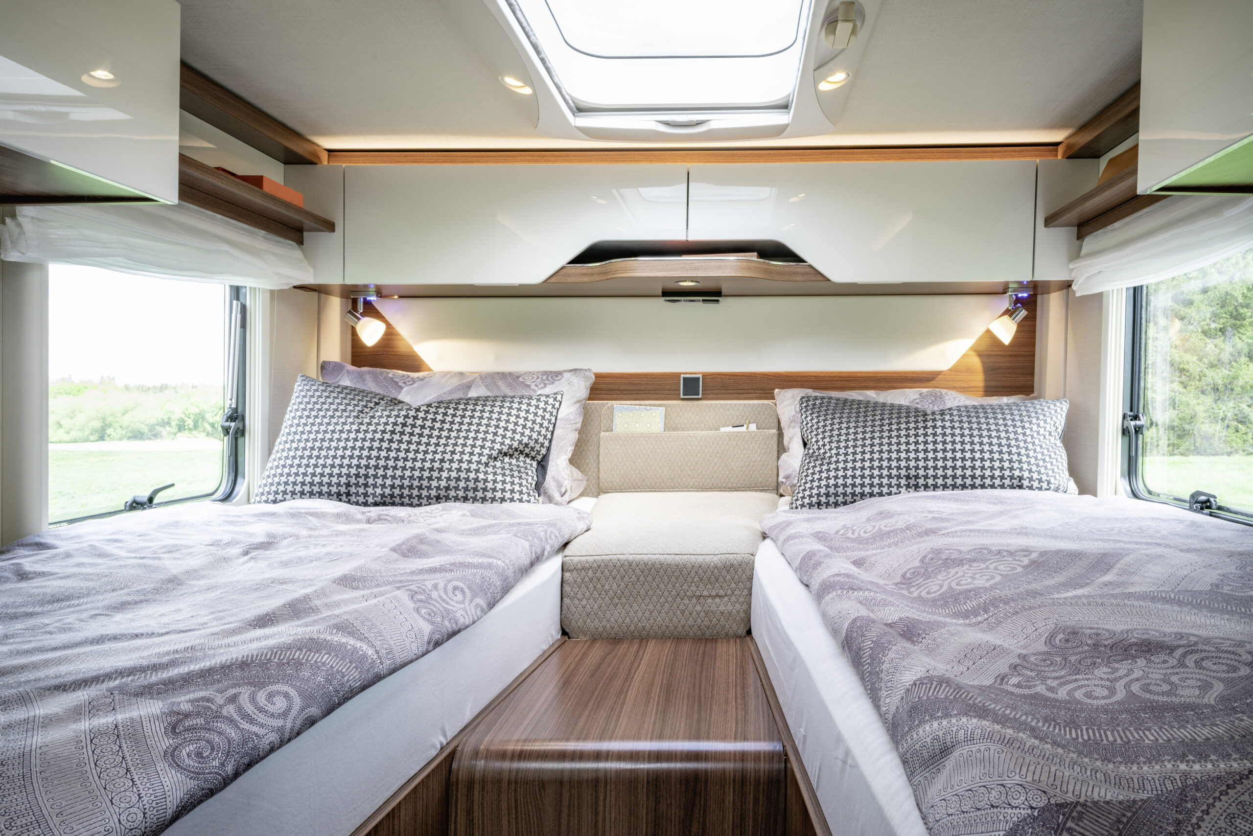 - Łóżka tylne o wymiarach 205 x 142 cm z materacem z pianki zimnej dla maksymalnego komfortu snu.