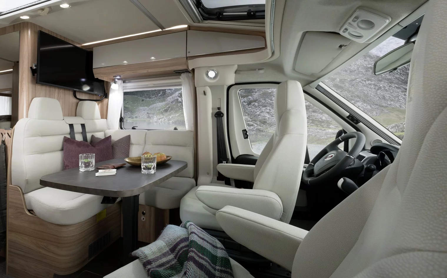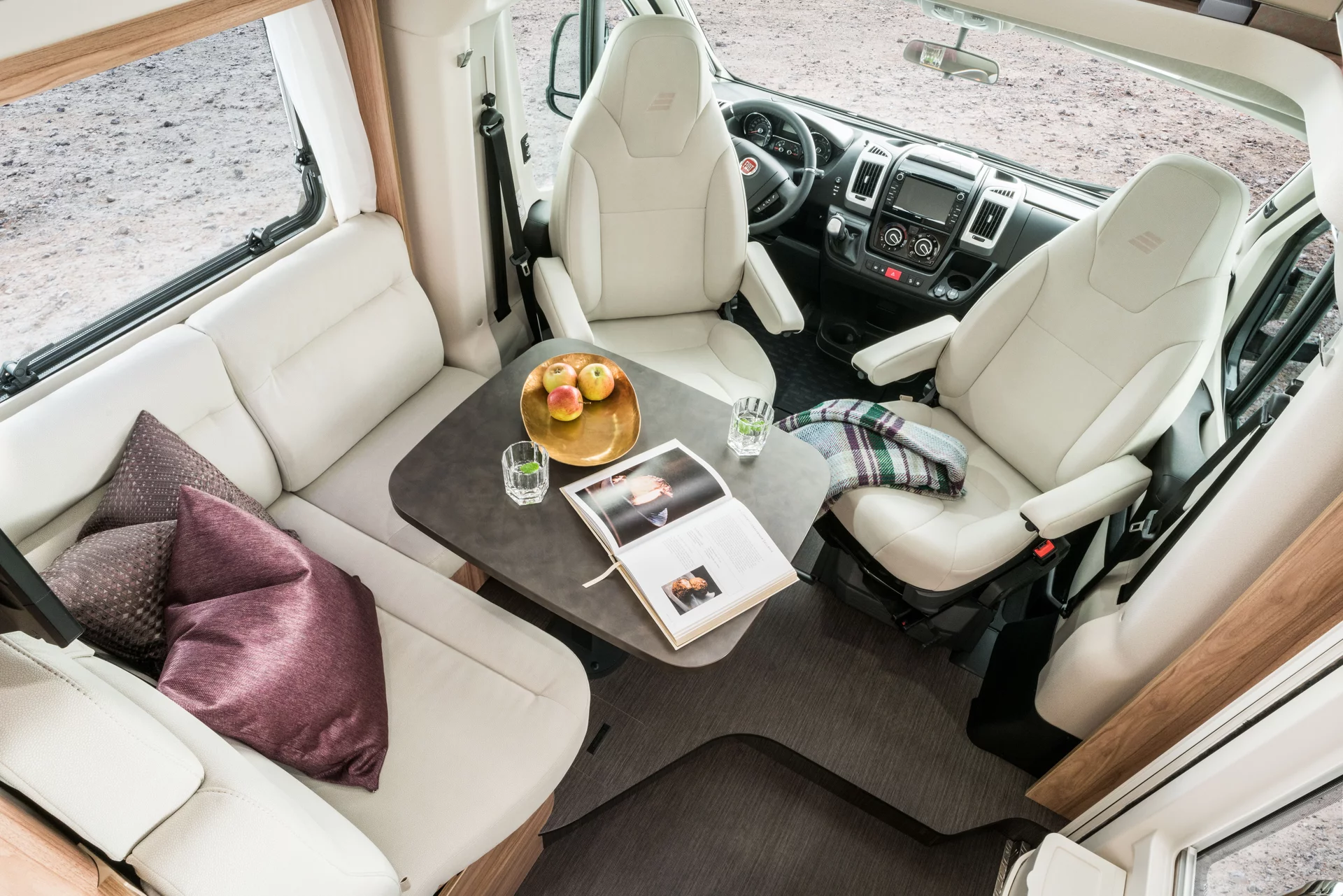 • Obrotowe fotele kapitańskie w kabinie kierowcy, integrujące szoferkę ze strefą mieszkalną.