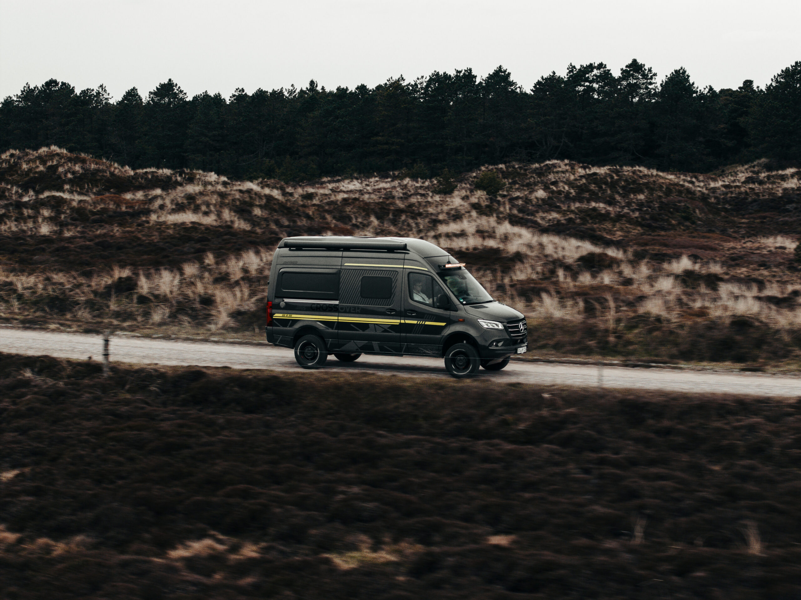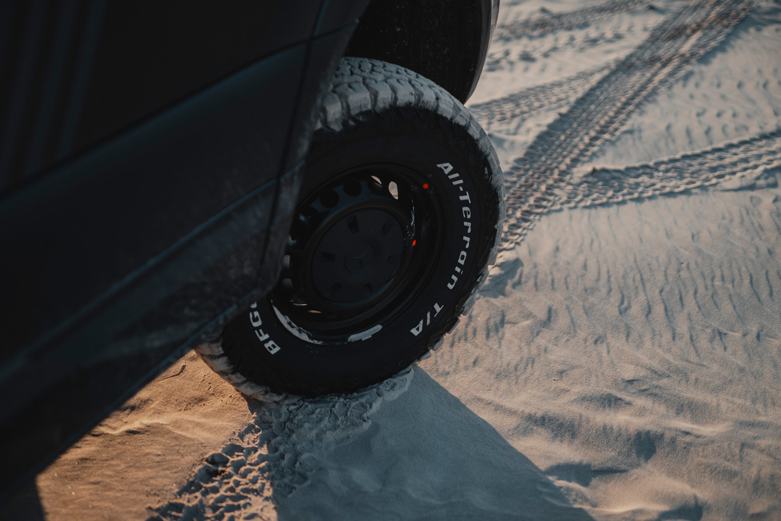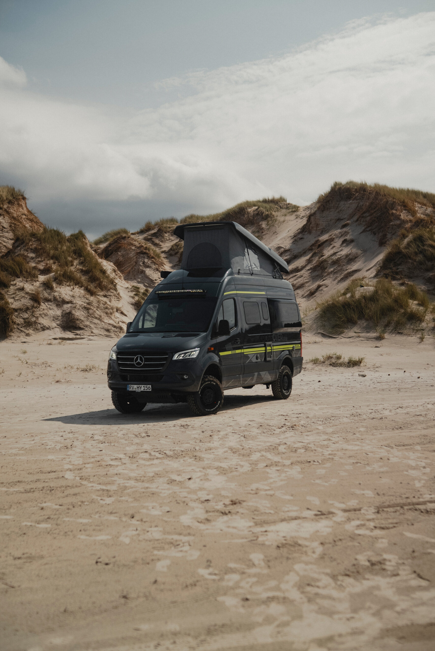 Napęd 4×4 Mercedes-Benz, podwyższone zawieszenie i opony AT pokonają każdą przeszkodę. Osłona silnika i solidny stopień wejściowy zapewniają bezpieczeństwo w trudnym terenie.