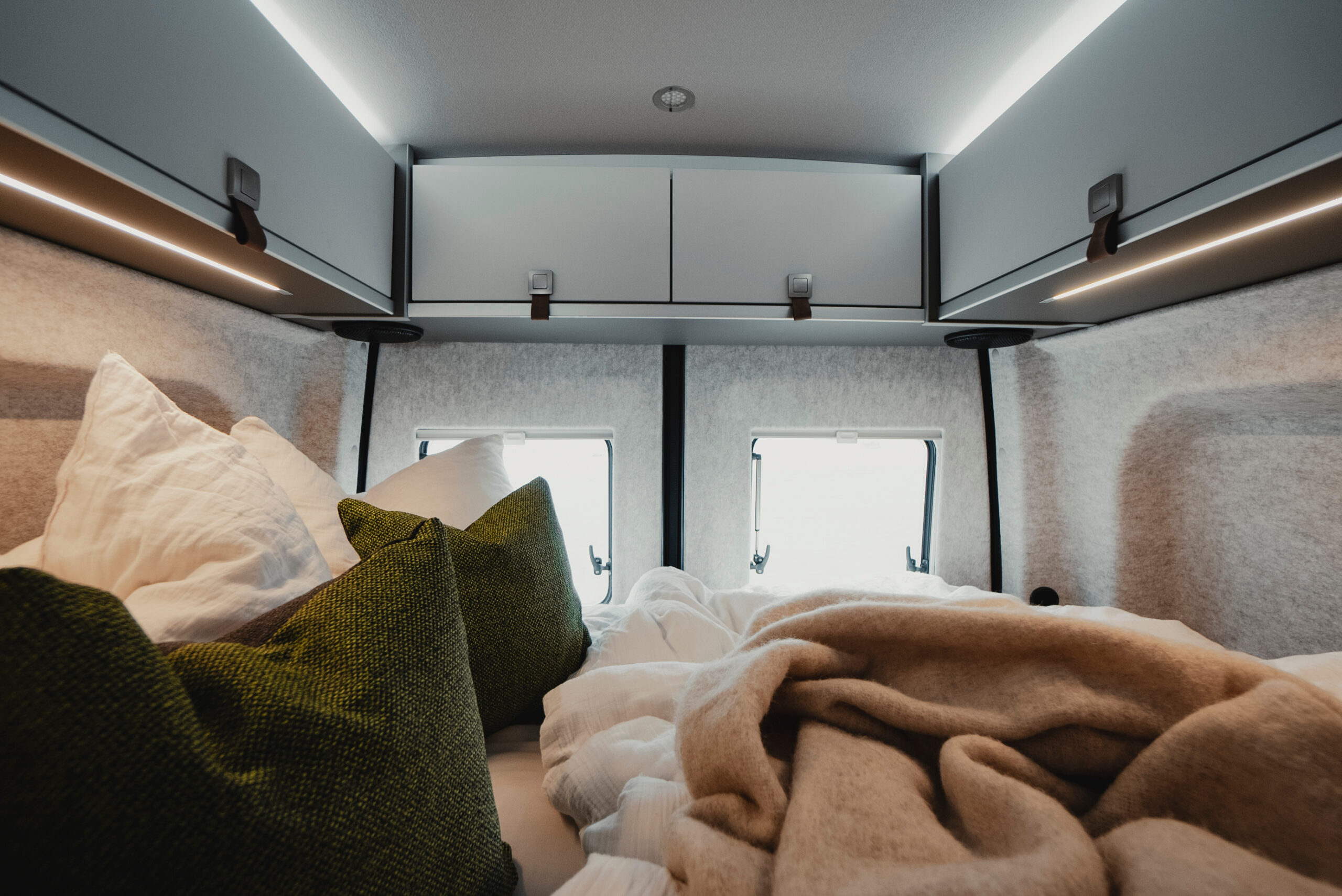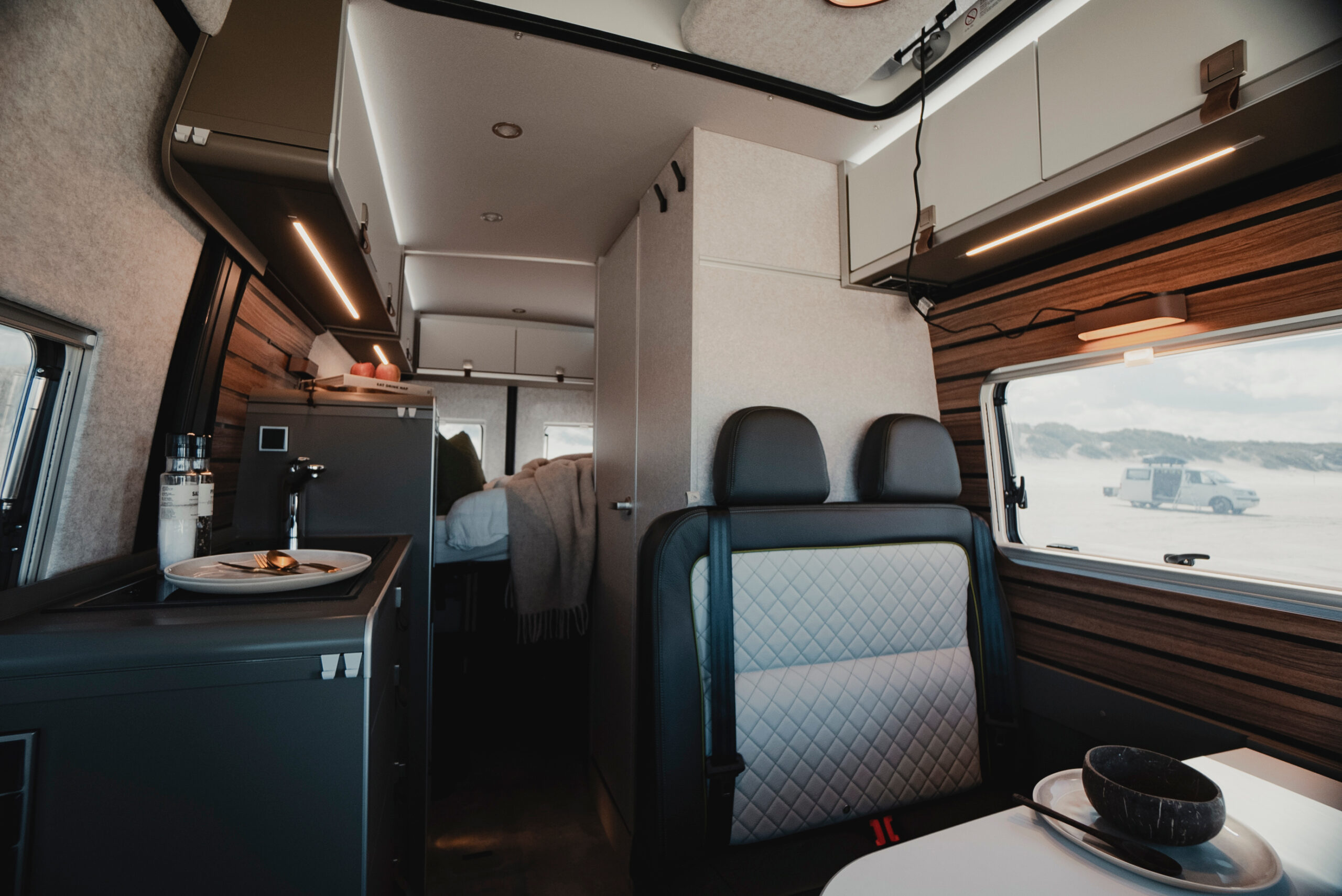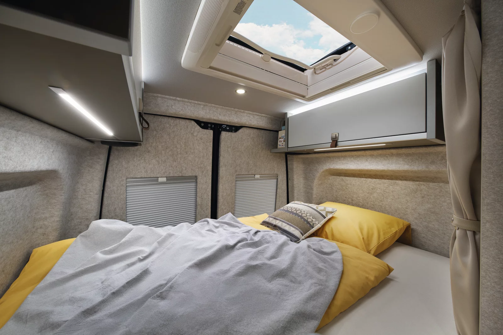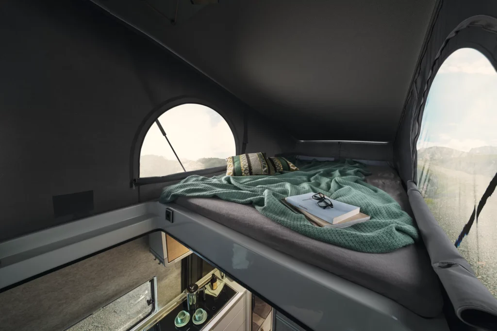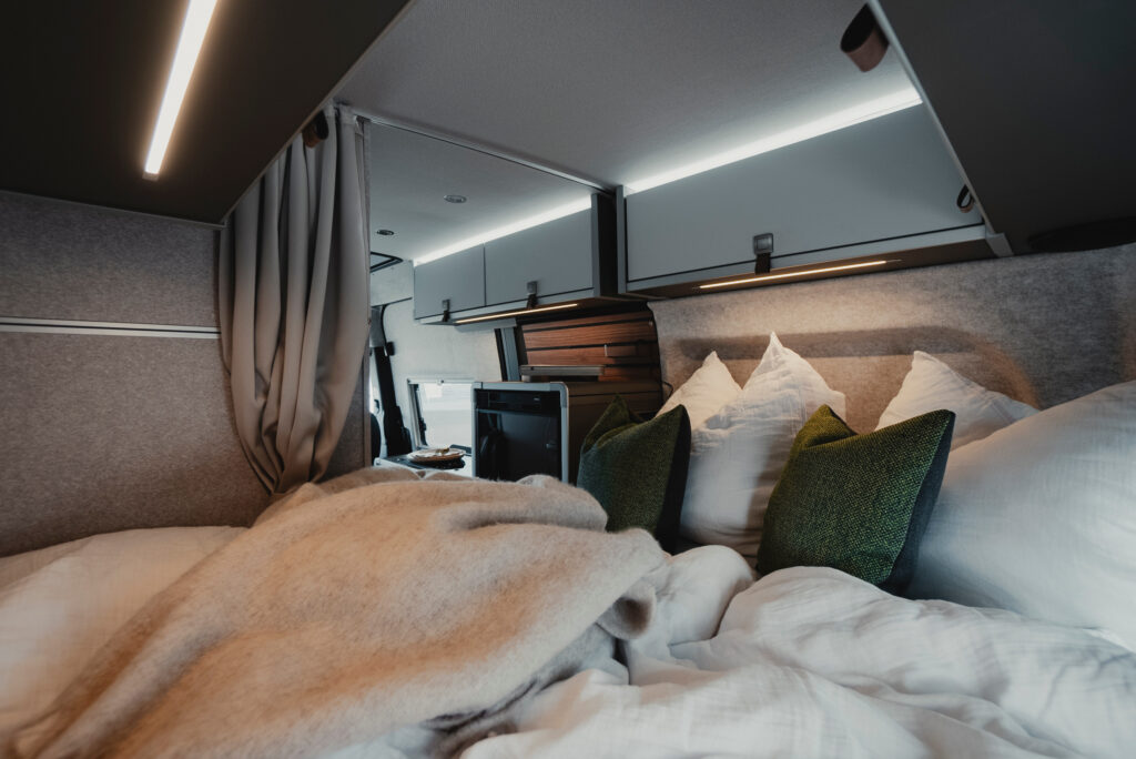 - Wygodne łóżko poprzeczne w tylnej części pojazdu, zapewniające komfortowy sen dla dwóch osób.