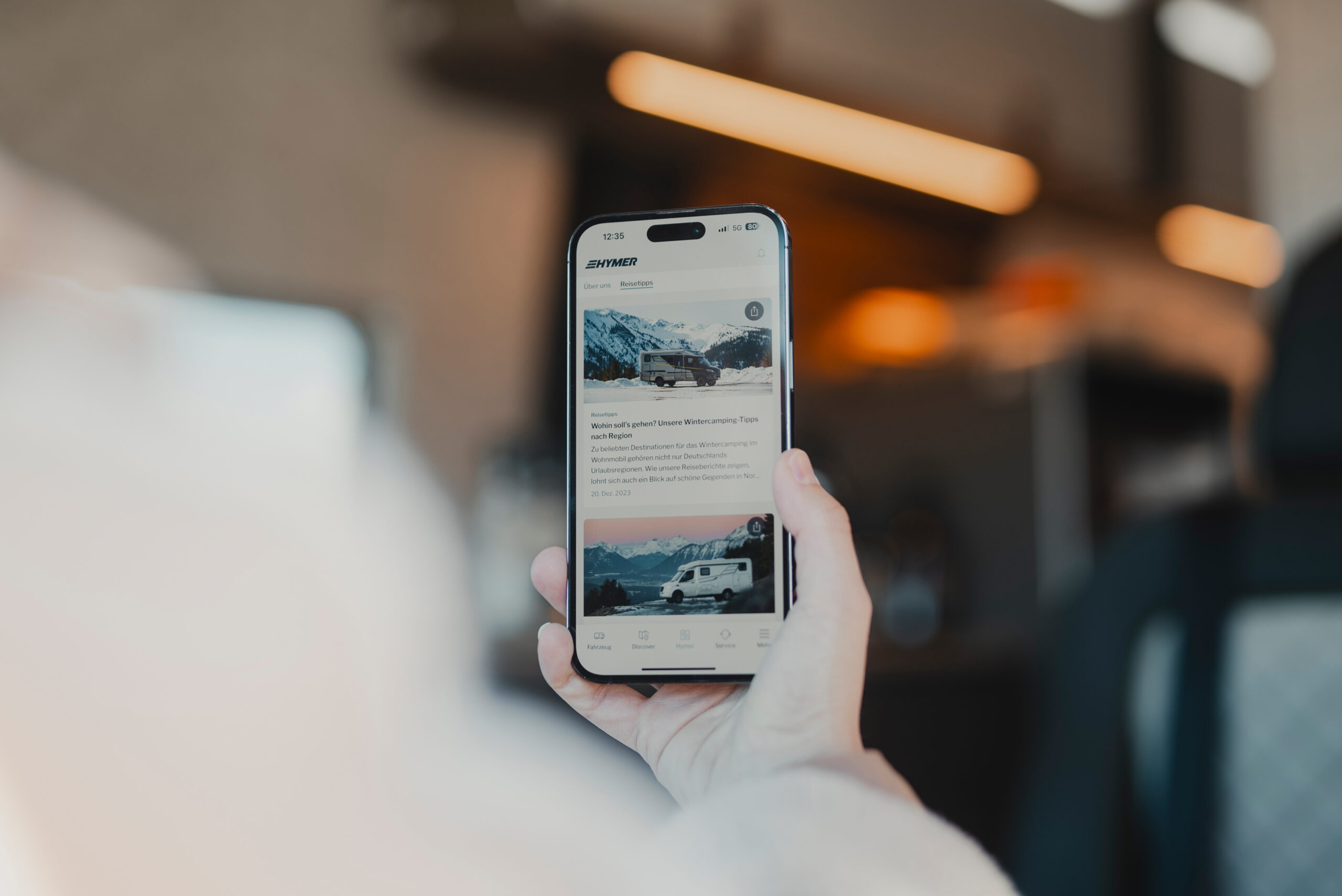 Zarządzaj zdalnie ogrzewaniem, światłem i innymi funkcjami przez aplikację HYMER Connect. Ciesz się komfortem i pełną kontrolą inteligentnego domu na kołach.