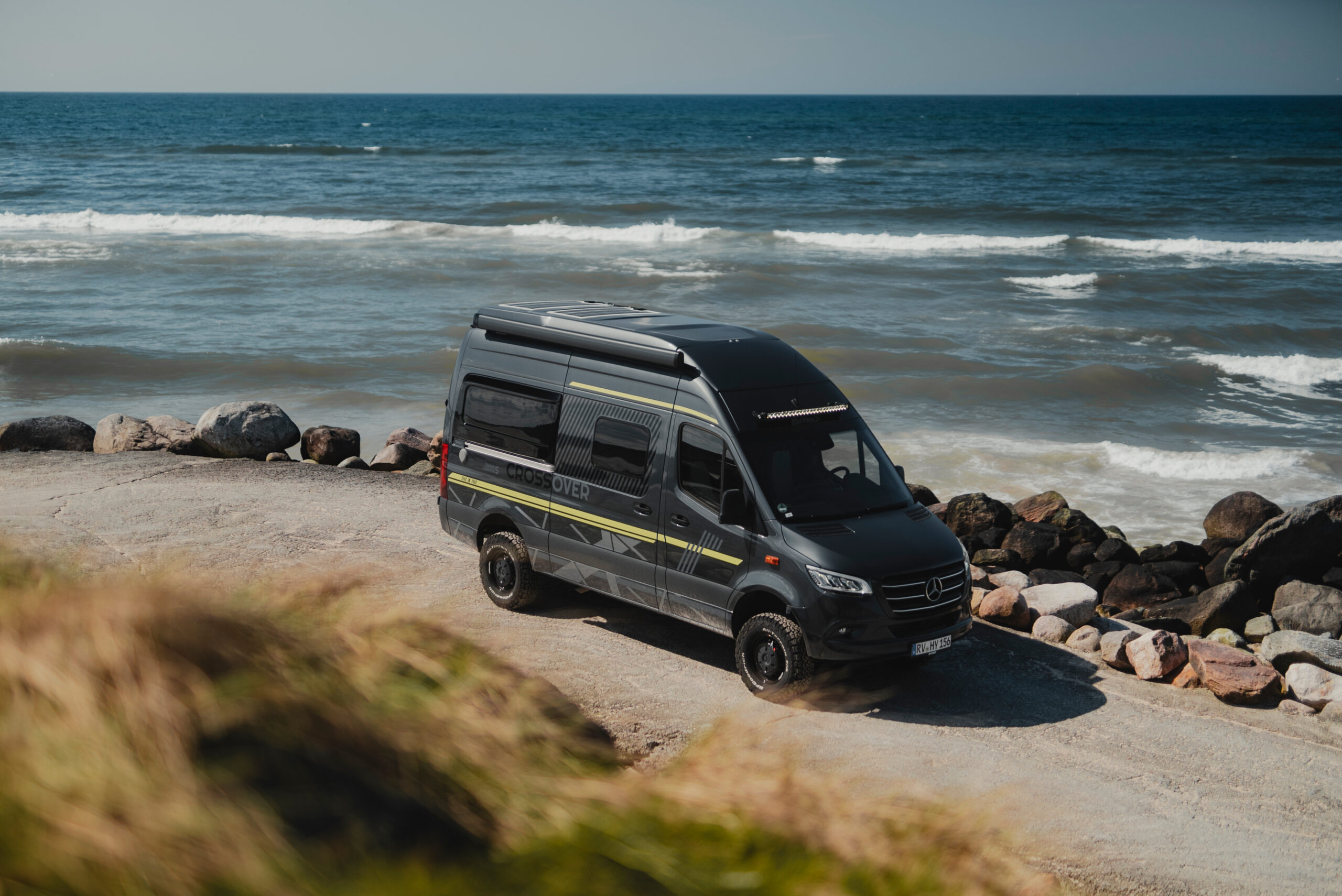 Poznaj Hymer Grand Canyon S CrossOver – kampervana stworzonego, by przekraczać granice. Zbudowany na niezawodnym podwoziu Mercedes-Benz Sprinter z napędem na cztery koła 4MATIC i podniesionym zawieszeniem, zabierze Cię w miejsca niedostępne dla innych. Oferując do 10 dni pełnej samowystarczalności energetycznej dzięki zaawansowanemu systemowi HYMER Smart Battery 2.0 i panelom solarnym, pozwala cieszyć się wolnością bez kompromisów. Dodaj do tego inteligentne sterowanie HYMER Connect, unikalny design CrossOver i komfortowe wnętrze Ivy Green, a otrzymasz idealnego towarzysza każdej wyprawy – od weekendowych wypadów po ambitne ekspedycje w nieznane.
