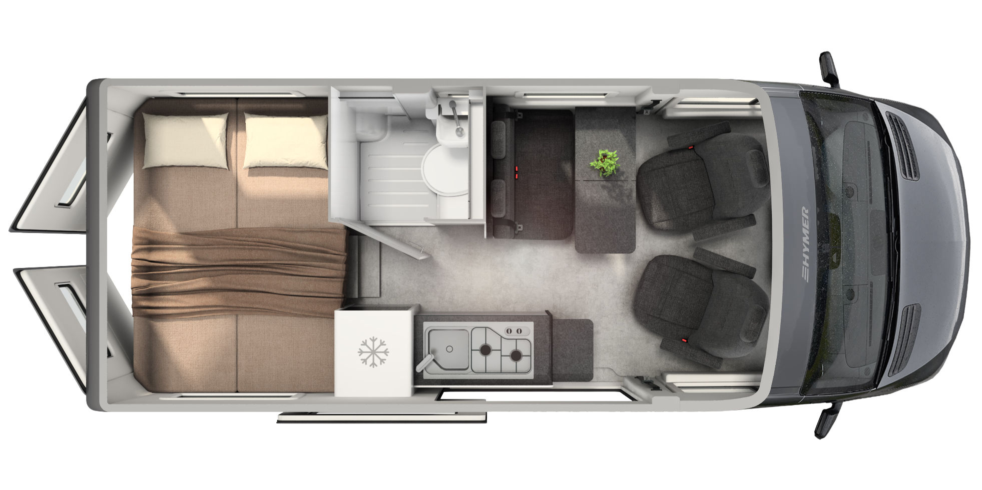 - System komfortowego snu HYMER z wysokiej jakości materacem zimno-piankowym i sprężynami talerzowymi dla optymalnego podparcia ciała.
