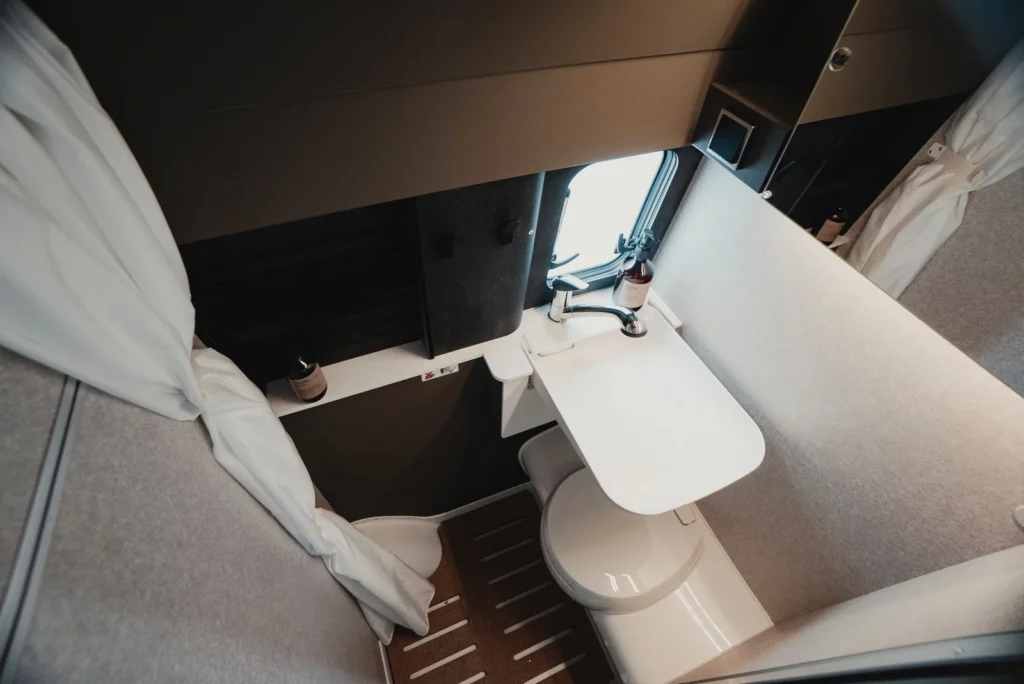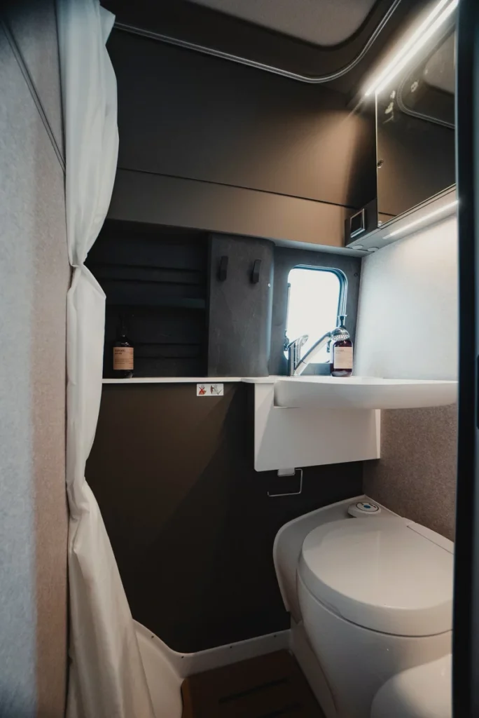 - Komfortowa toaleta kasetowa Thetford z obrotową muszlą dla łatwiejszego dostępu.