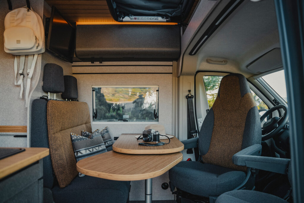 - Wygodna kanapa „Travel Lounge” z regulowanym pochyleniem oparcia zapewnia ergonomię podczas jazdy i pełen relaks na postoju.