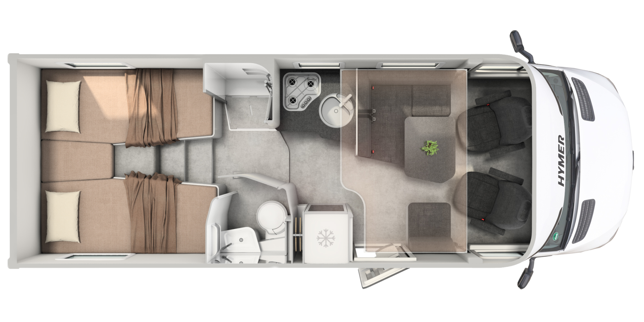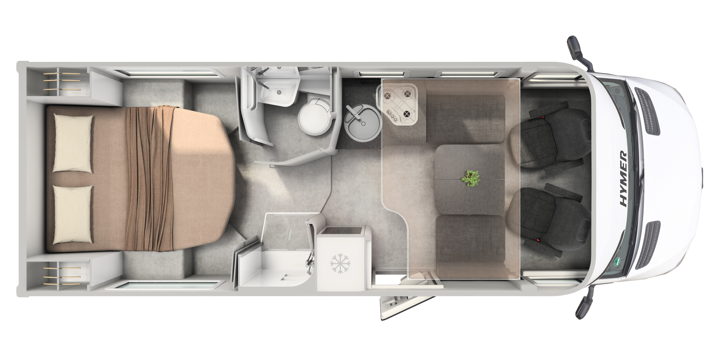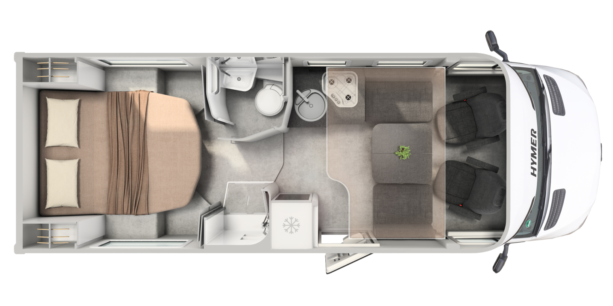 - System komfortowego snu Hymer z materacami z zimnej pianki i stelażami talerzowymi gwarantuje zdrowy sen.