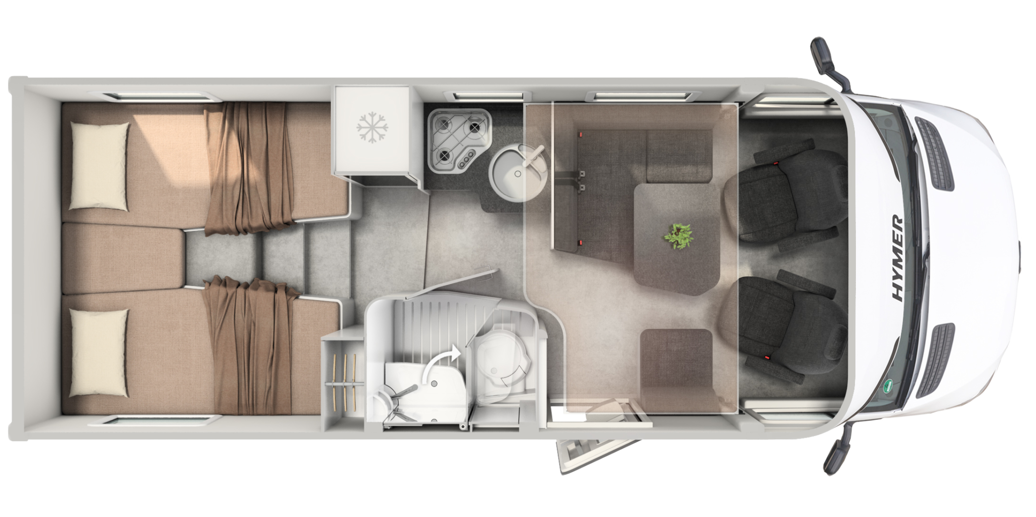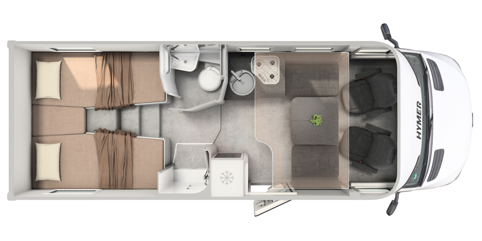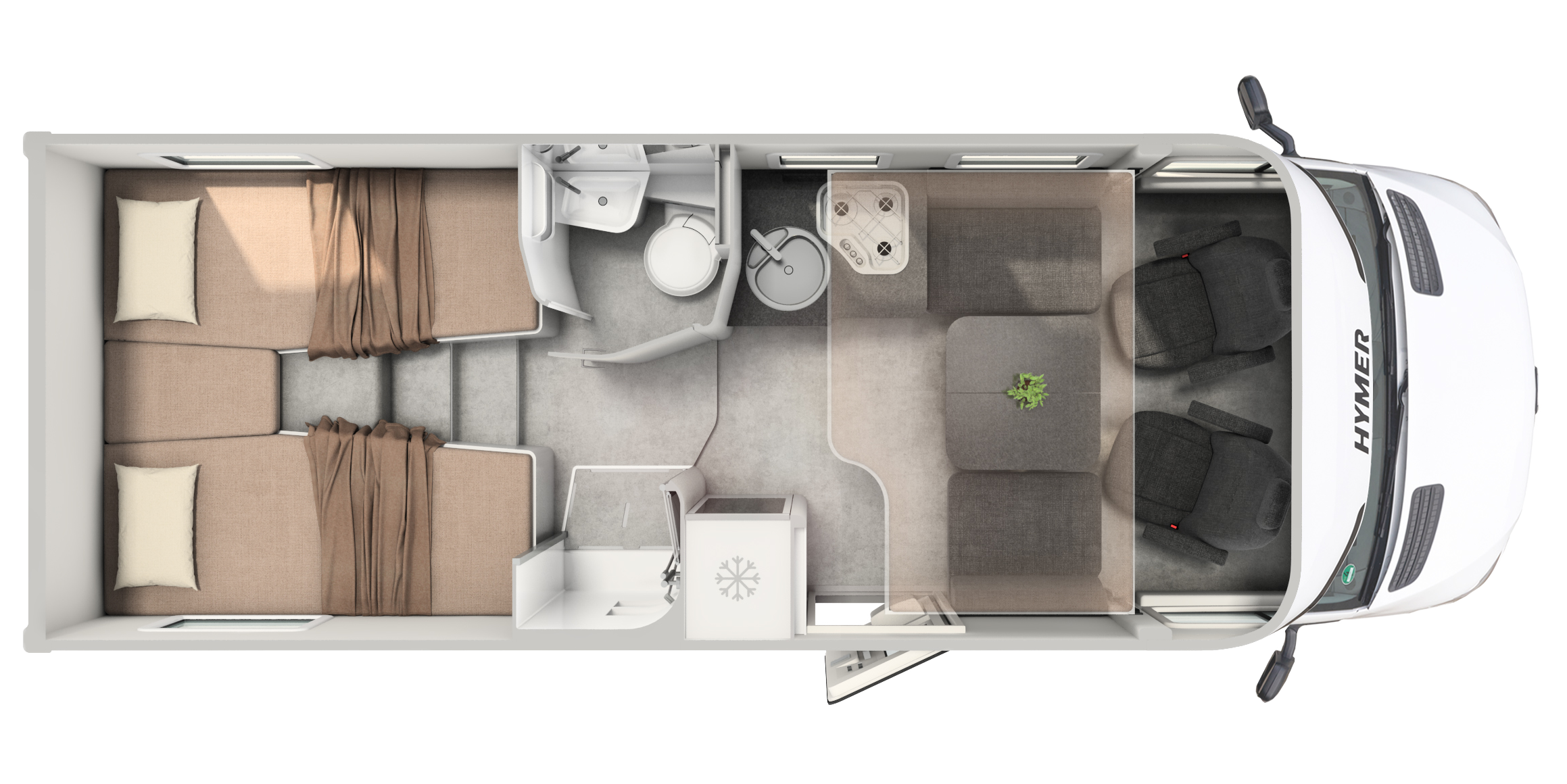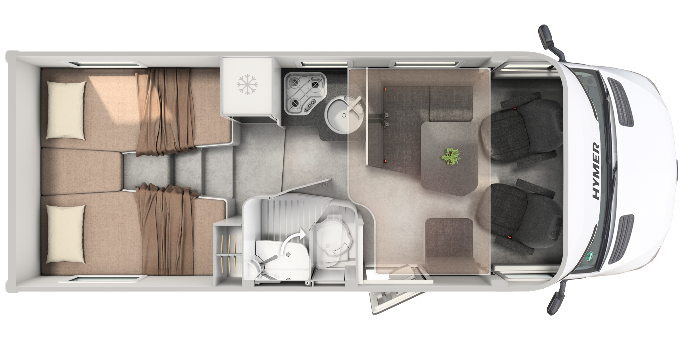 - System komfortowego snu Hymer z materacami z zimnej pianki i stelażami talerzowymi gwarantuje zdrowy sen.