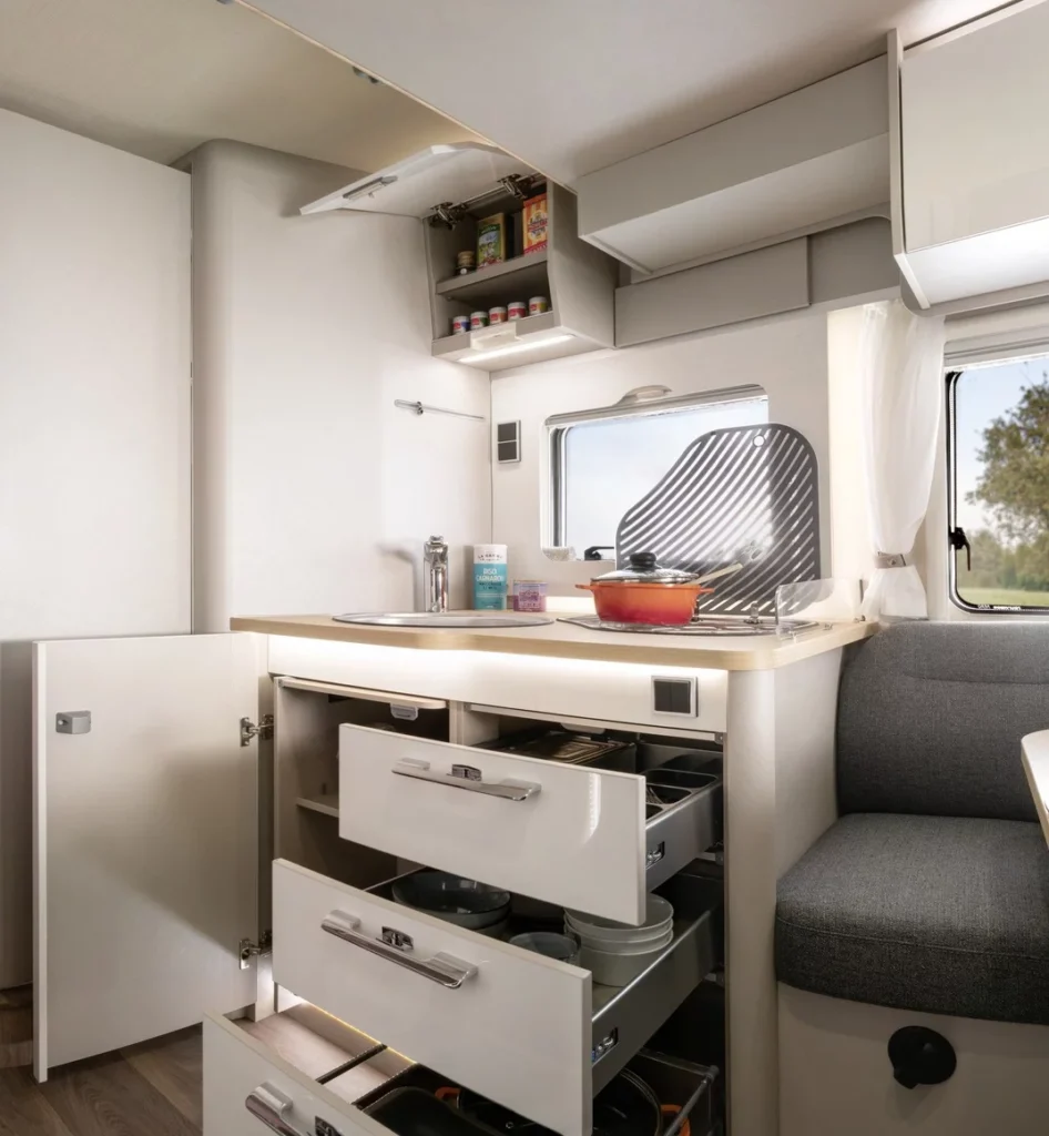 Standardowe ogrzewanie na olej napędowy Truma Combi D i wydajna 152-litrowa lodówka kompresorowa minimalizują zużycie gazu. Zyskujesz większą swobodę w wyborze miejsc postoju i dłuższą autonomię z dala od infrastruktury.