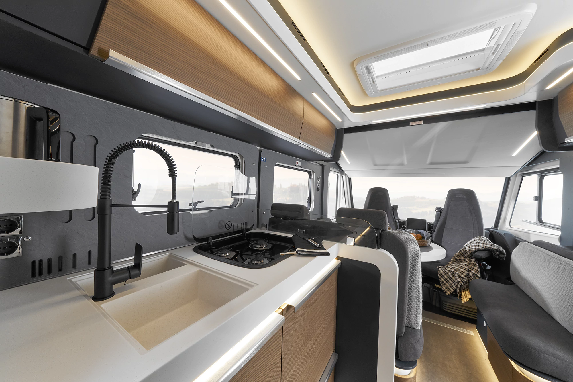 Duży kamper w zabudowie integra przypadnie do gustu wszystkim, którzy cenią sobie poczucie swobody i przestrzeni na każdym etapie podróży. Włoski projekt Laika Kreos ujmuje dbałością o najmniejsze detale, dzięki którym od razu można poczuć się jak w domu i z entuzjazmem sięgać po nowe doświadczenia, wraz z przebytymi kilometrami wyznaczonej wcześniej trasy. Wyjazd nad morze, w góry lub na malowniczą wyspę – dzięki ekskluzywnym kamperom z grupy Hymer realizacja wszystkich planów podróżniczych jest już w zasięgu ręki.