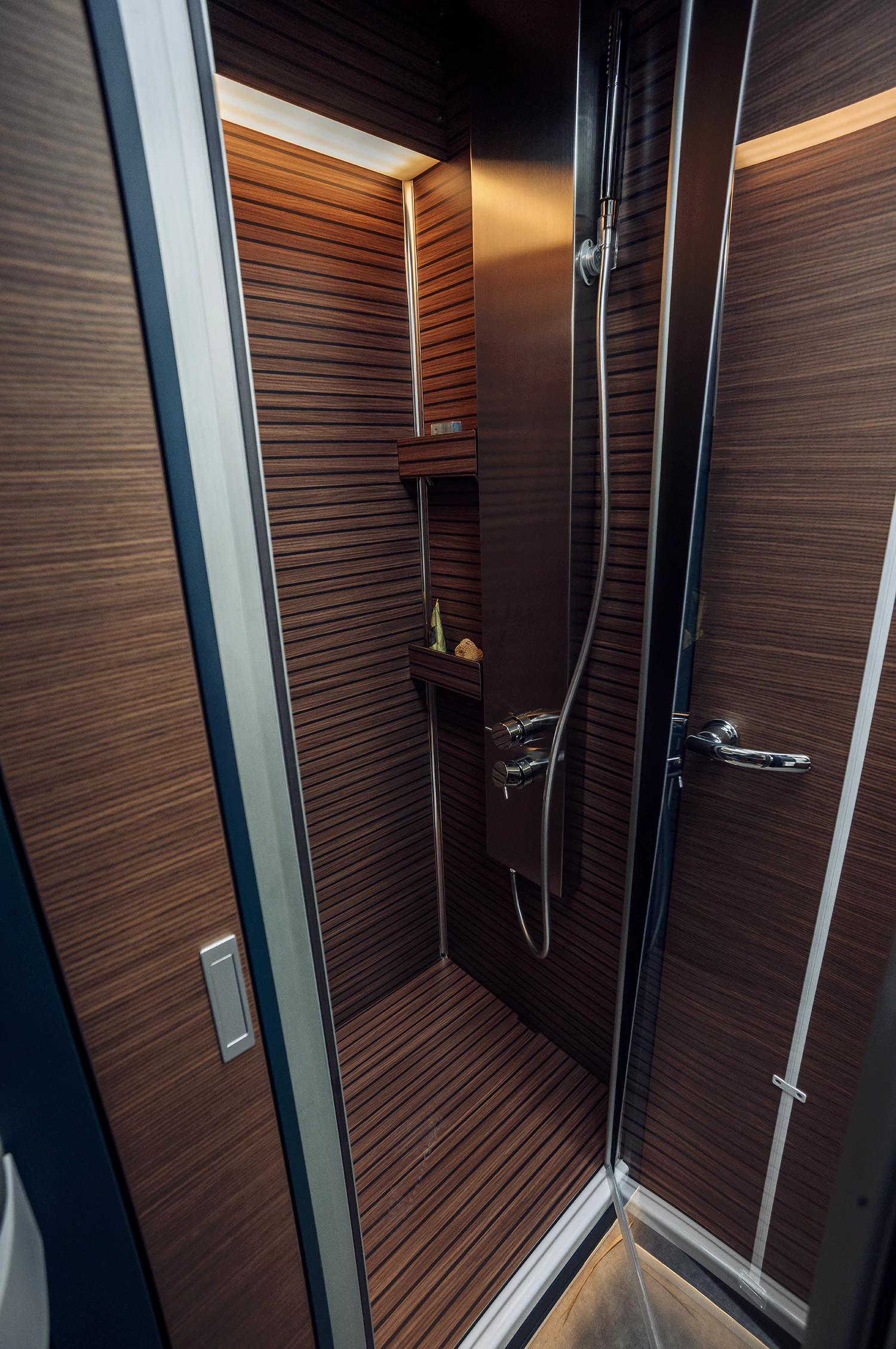 - sterowane elektrycznie rolety plisowane, zapewniające bardzo dobrą ochronę przed słońcem i poczucie prywatności podczas wypoczynku