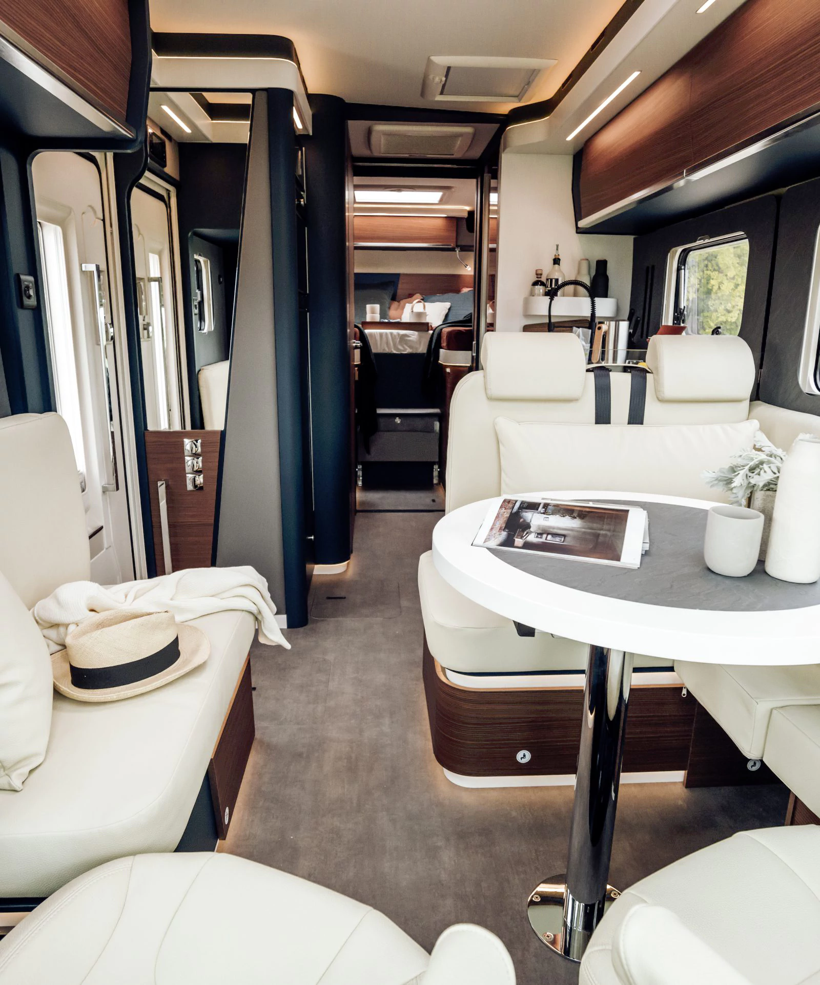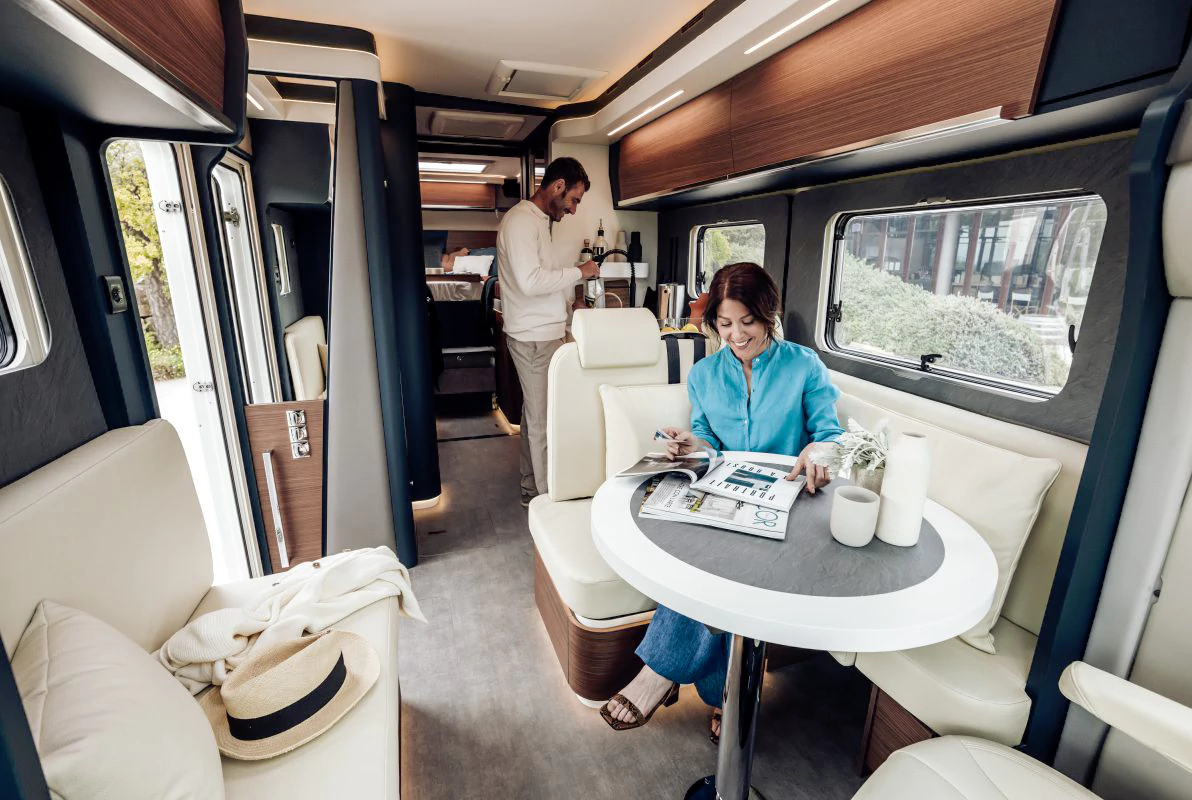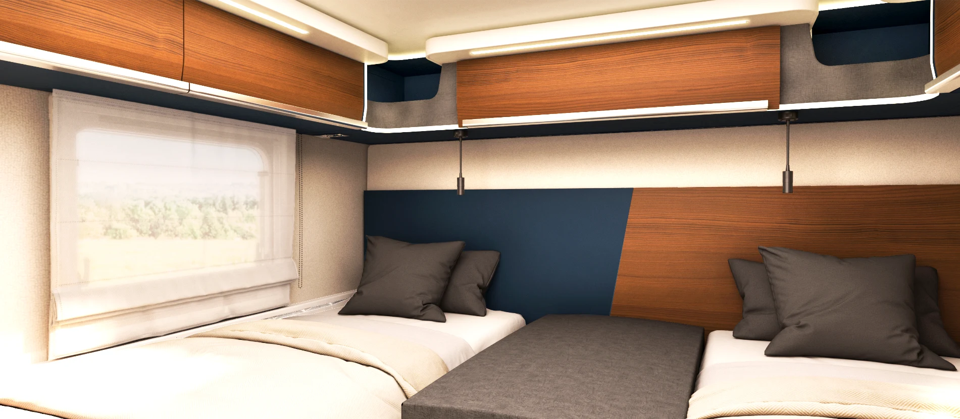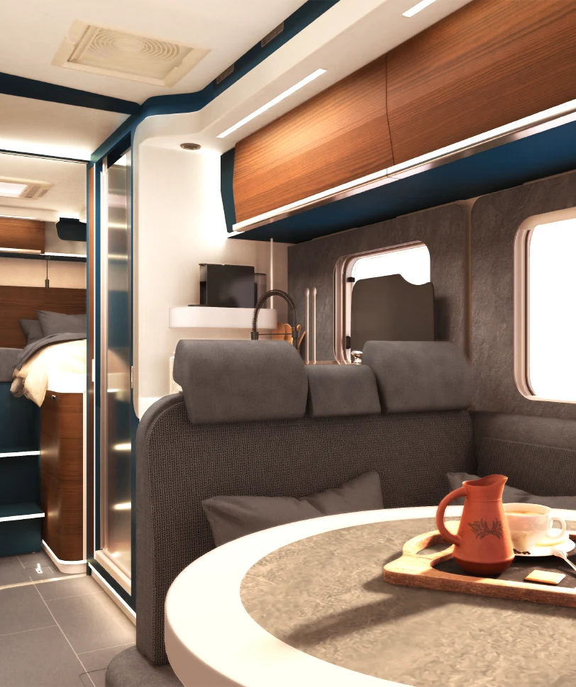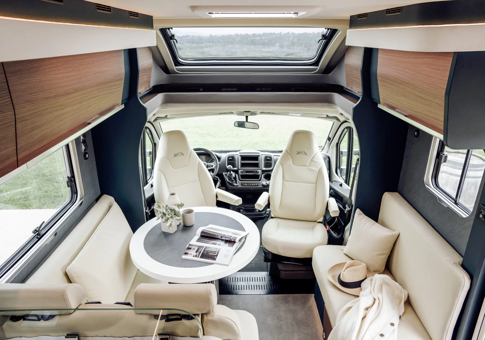 Ekskluzywne kampery półintegra z serii Kreos to ukłon w stronę wymagających użytkowników, którzy nie uznają kompromisów. Sposób aranżacji przestrzeni zachęca do czerpania pełnymi garściami z każdego etapu zaplanowanej wyprawy. Wyrafinowane wzornictwo i wysoki komfort uwzględnione zostały zarówno w strefie dziennej, jak też sypialnianej. Miłośnicy pięknego designu zwrócą na pewno uwagę na gustowne wykończenia z naturalnego drewna, modne tekstylia i klimatyczne oświetlenie.