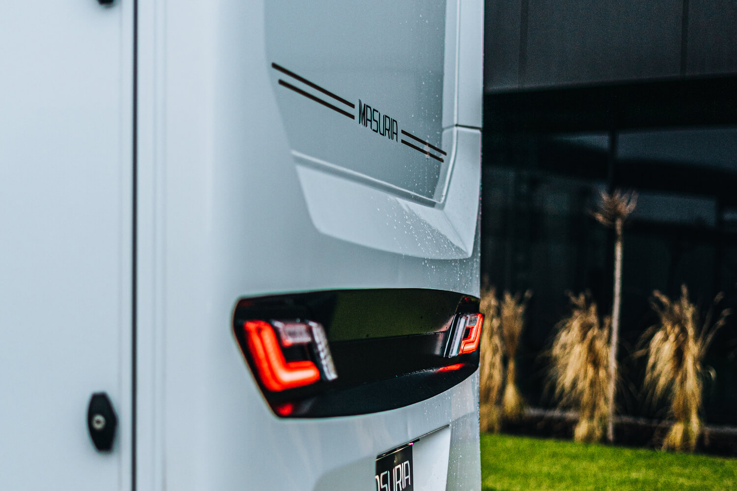 Przednie światła wykonane w technologii Bi-xenon zapewniają znacznie lepszą widoczność niż tradycyjne reflektory halogenowe. Natomiast tylne światła full LED podkreślają wyjątkowy design oraz nowoczesne technologie zastosowane w zabudowie kampera Masuria.