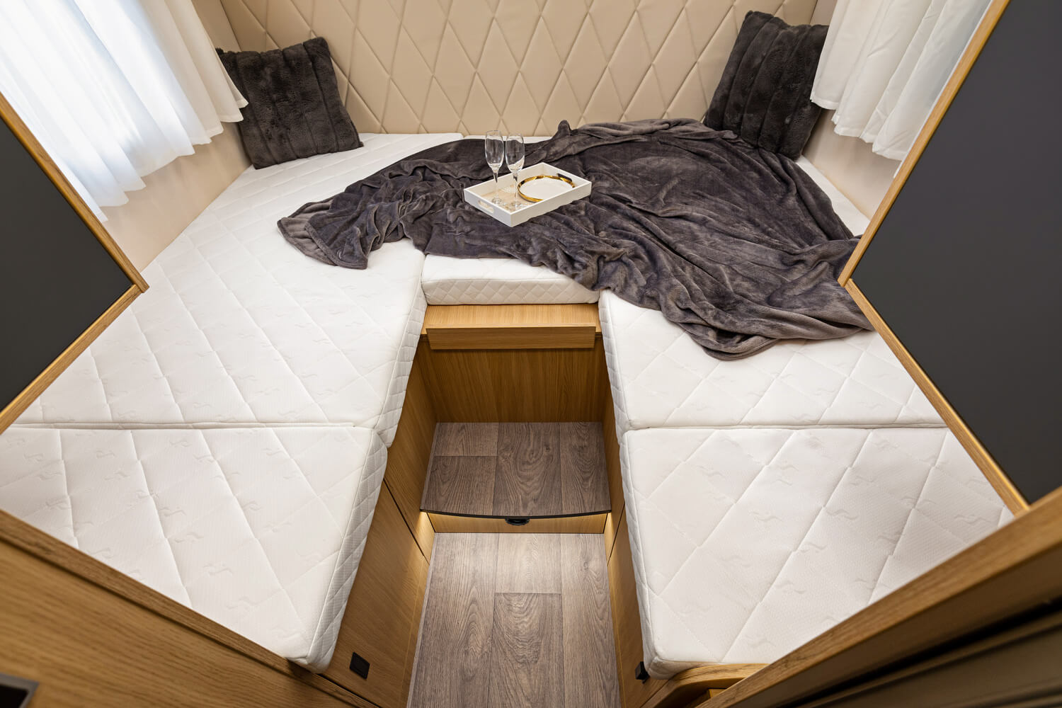 Ten kamper został stworzony z myślą o tych, którzy cenią sobie praktyczne innowacje. Elektrycznie opuszczane łóżko w salonie, przestronny garaż oraz staranne wykończenia podkreślają zarówno luksus, jak i funkcjonalność.