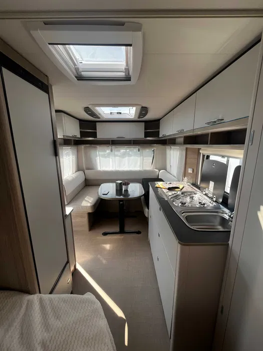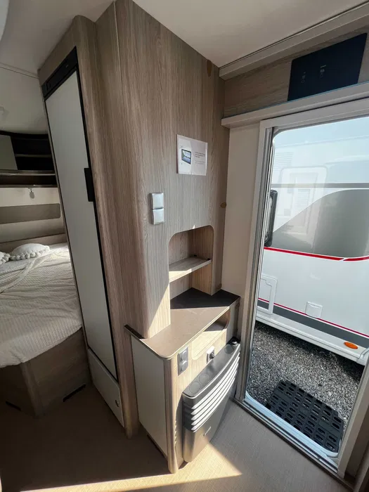 Zaprojektowana z myślą o wygodzie, Bürstner Premio 455 TS charakteryzuje się przestronnym wnętrzem z wysokością stojącą 198 cm, co zapewnia uczucie otwartej przestrzeni. Dodatkowo, przyczepa oferuje wygodne i elastyczne opcje spania dla maksymalnie 4 osób, z możliwością konfiguracji łóżek zgodnie z indywidualnymi potrzebami.